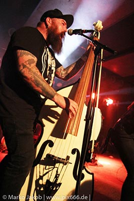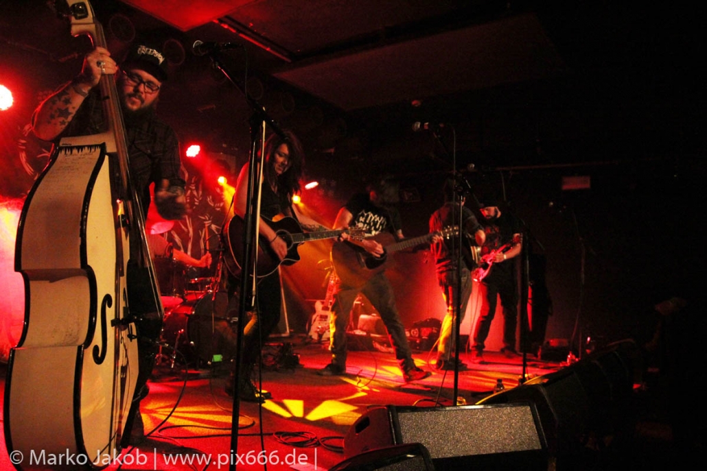 Nach etwa 20 Minuten Pause war es dann soweit. Mit dem Titelsong des aktuellen Albums legten The Creepshow gleich mit vollem Tempo los. Der Club war nun komplett voll und die Stimmung war über die ganzen Dauer des Konzertes kaum zu übertreffen. The Creepshow spielen aktuell ihre erste Headliner Tour in Deutschland, waren aber in der Vergangenheit auch schon auf deutschen Bühnen unterwegs. Kenda sagte sie lieben Deutschland, und vor allem Berlin – es ist wie ihre zweite Heimat. Natürlich konnten es sich die Männer der Band nicht verkneifen, Deutschland für den Sieg über Kanada im Eishockey bei Olympia zu gratulieren, eine der Top Sportarten im Land des Ahornblattes.