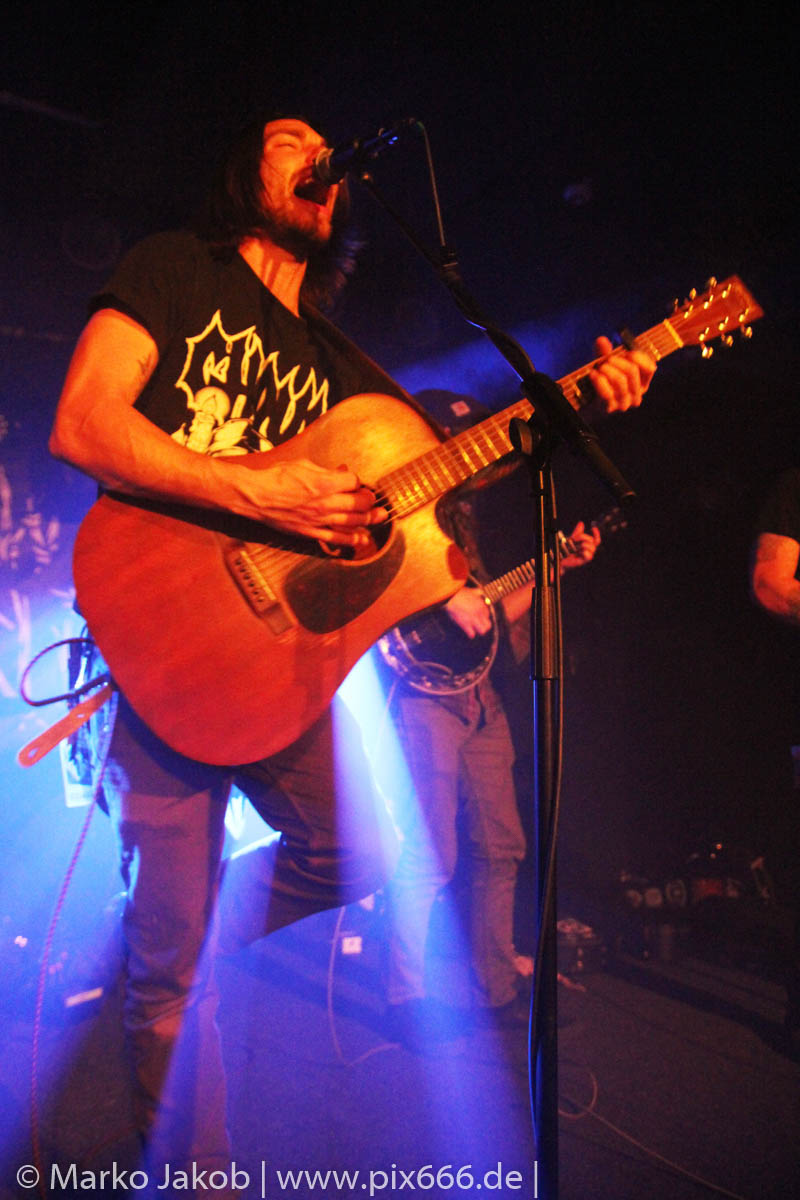 Um 20 Uhr ging es los im gut gefüllten Bi Nuu. Die sechs Musiker von Gallows Bound legten los mit ‚Broken Glass‘ von ihrer aktuellen EP. Es entwickelte sich ein absolut abwechslungsreiches Konzert. Die Vielseitigkeit der Musik wurde durch den wechselnden Gesang von Jordan und Jesse verstärkt. Eine weitere extravagante Note bekam die Musik durch die Verwendung von Banjo und Mandoline, zwei nicht alltägliche Instrumente.