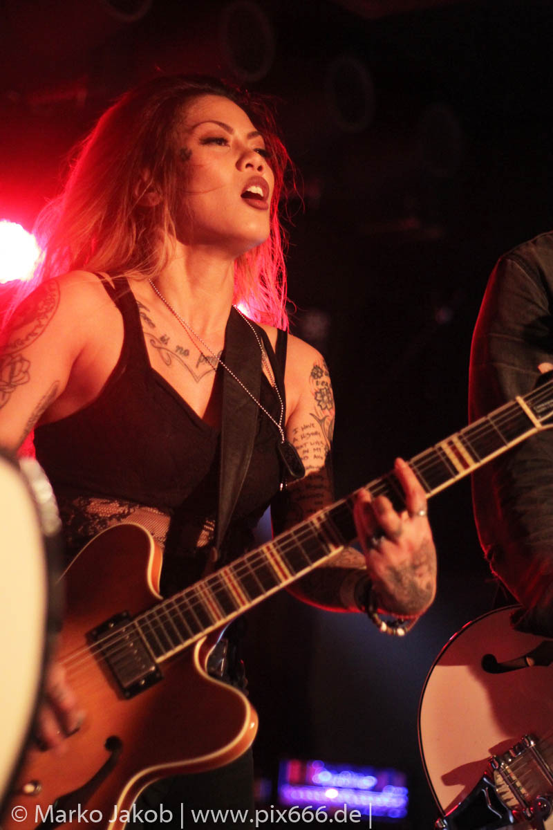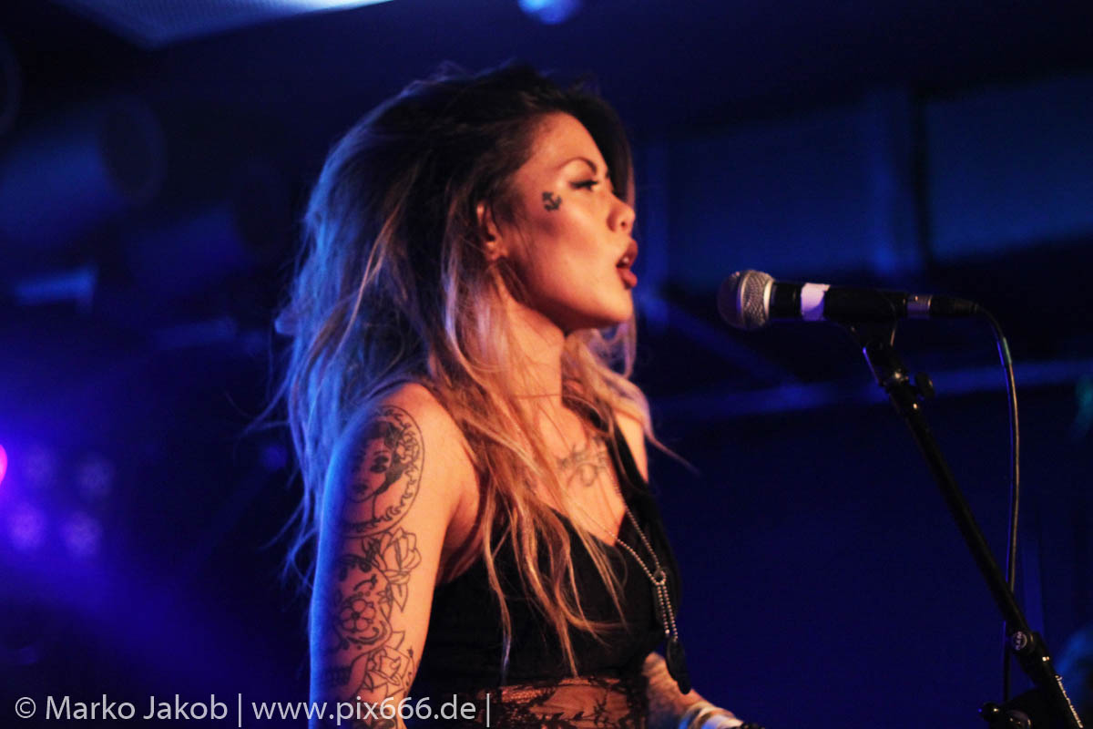 Beim Song ‚Hellbound‘ konnte sich Kenda eine kleine Pause gönnen, diesen performten die Musiker ohne ihre Frontfrau. Ein Highlight des Abends war unter anderem, als die zierliche Sängerin einen Titel auf dem Kontrabass stehend sang – wow.