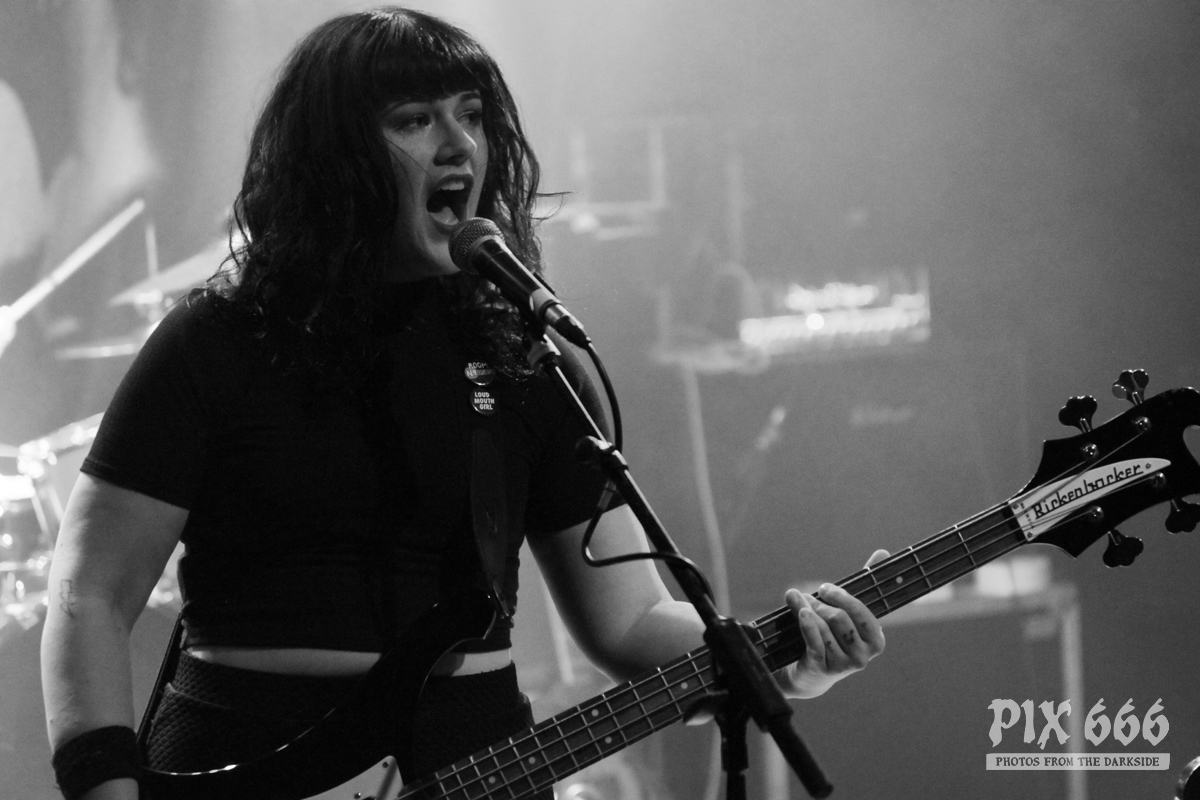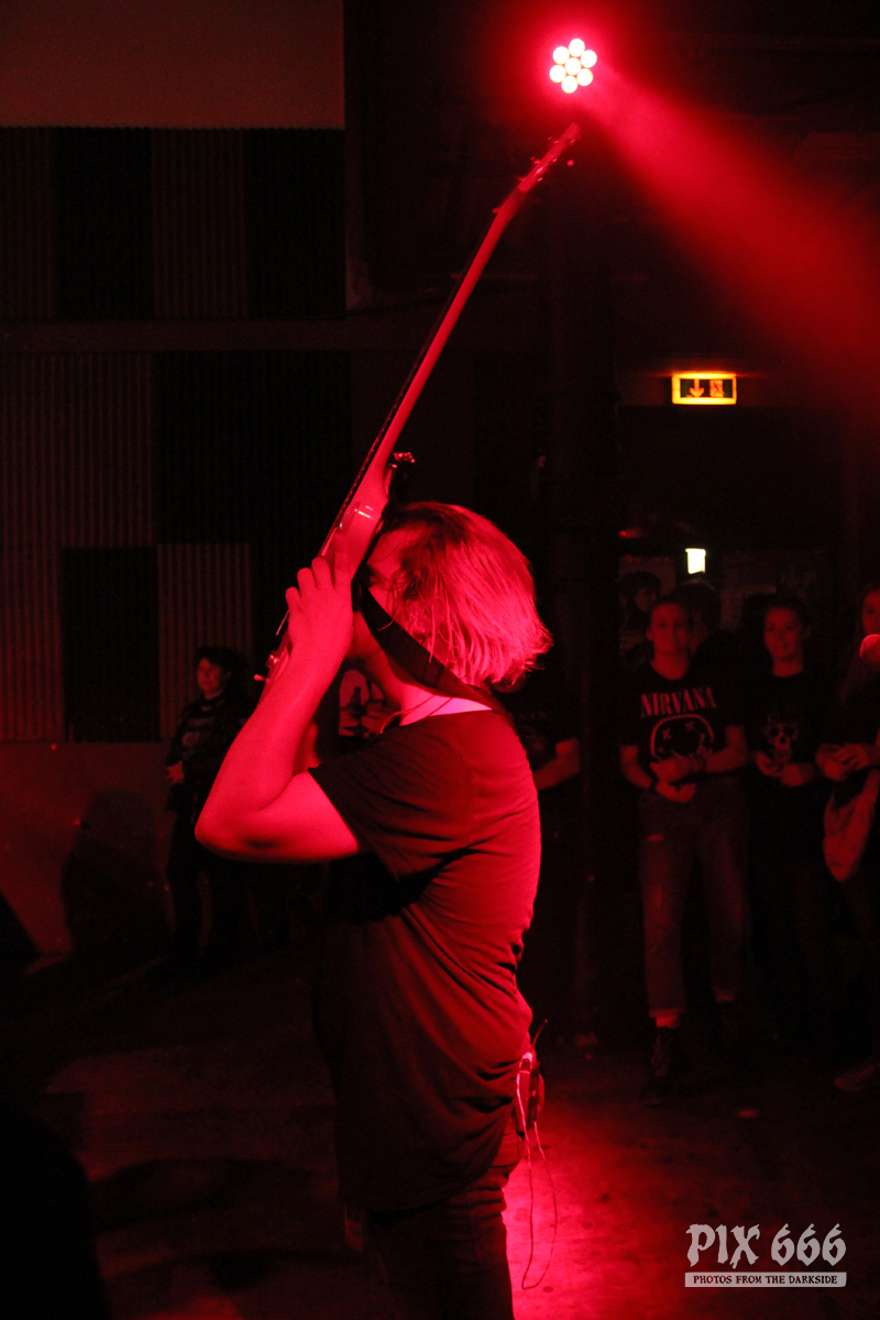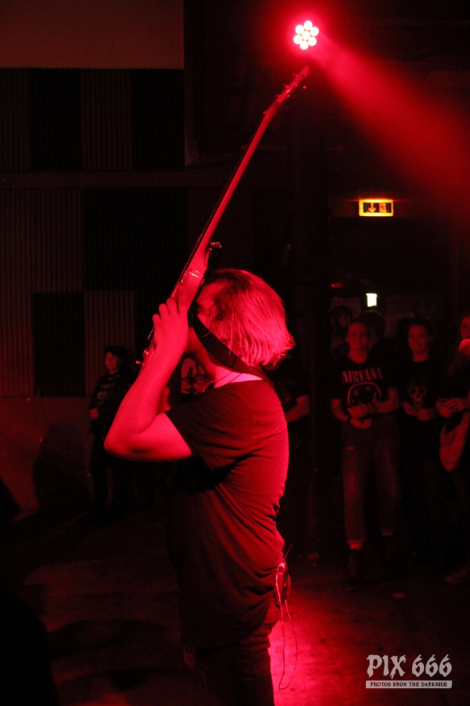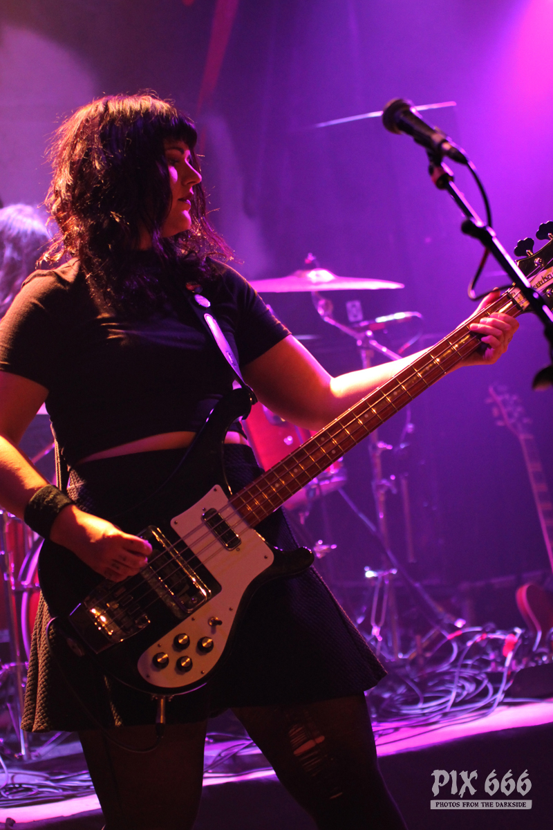 Nun gab es ziemlich Gewusel auf der Bühne beim Umbau – man hatte den Eindruck es sollte oder musste schnell gehen. 21.50 Uhr ging es dann auch tatsächlich schon weiter – Changeover in Rekordzeit. Die vier Freundinnen aus Toronto in Kanada betraten die Bühne und rockten sofort los. ‚Mean Genes‘ vom aktuellen The Anti-Queens Album machte den Anfang. Nach ‚Sorry Babe‘ fragte Sängerin Emily: „Wie geht’s euch Hamburg – habt ihr Bock ein bisschen mit uns zu singen?“ Der Club war jetzt etwas mehr als halbvoll und die Stimmung wurde besser und besser. Die Mädels auf der Bühne hatten richtig Spaß und prosteten den Leuten im Publikum zu – Flasche an Flasche – das funktioniert in einem kleinen Club ohne Absperrung ziemlich gut. „Es ist so geil hier zu sein – eir sind zum ersten Mal in Hamburg – und es ist unser erste Tour in Deutschland“ sagte Emily. Dann hatten sie einen Song dabei, der von der Dating App Tinder handelte – und wenn ich mich nicht komplett verhört habe, erwähnte Emily die Worte ‚kleiner Schniedel‘ – auf Deutsch! Haha ?