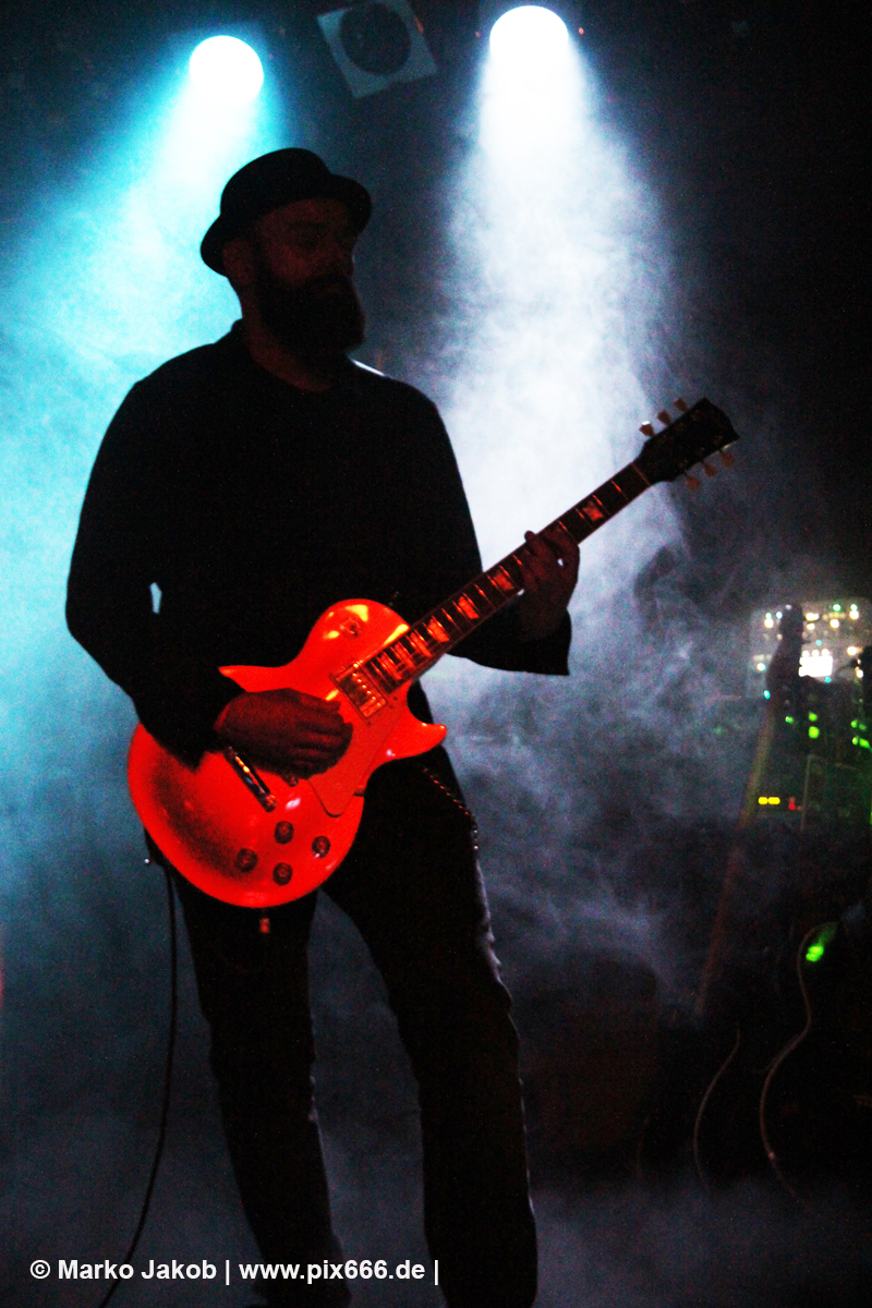 Um etwa 20 Uhr begannen On The Floor das Konzert dann mit dem Opener ‚Lifetime‘ vom gleichnamigen neuen Album. – schöner düsterer Rock, die für eine tolle Atmosphäre im Nuke Club sorgte. Düsteres Licht und Nebel passten sich perfekt an die Musik an – der Sound war gut. Über die Hälfte des Sets beinhaltete neue Songs – diese kamen beim Publikum richtig gut an – leider waren aber an diesem Mittwochabend nicht sehr viele Leute erschienen.