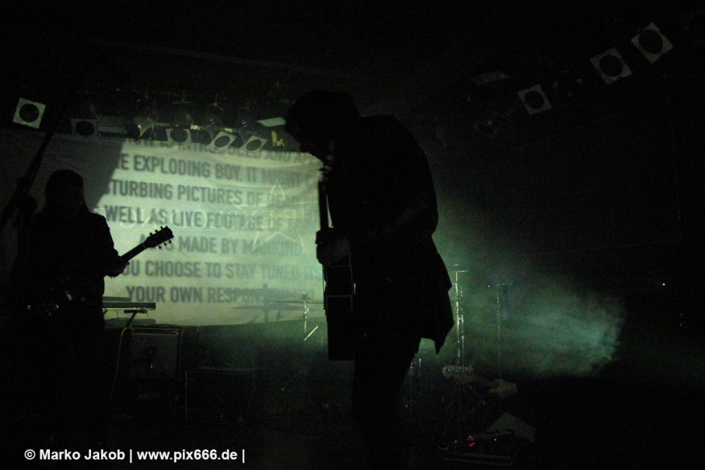 Der letzte Auftritt von The Exploding Boy in Berlin liegt schon etwas über fünf Jahre zurück. Die Band hatte natürlich neben ihren bekannten Songs auch eine Handvoll neue Stücke vom Album ‚Alarms‘ mitgebracht. Zum Beispiel den Song ‚The Day‘ – fast alle im Publikum haben dazu getanzt, oder sich auf andere Art und Weise irgendwie bewegt. Die Stimmung war jetzt richtig gut. Als erste Zugabe kam mit ‚Alarms In Silence‘ wieder ein neuer Song.