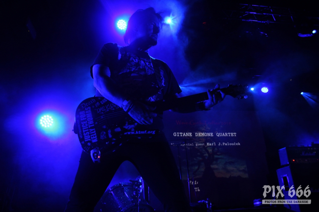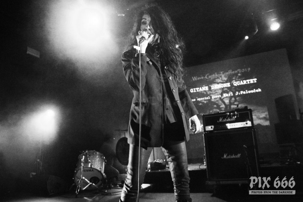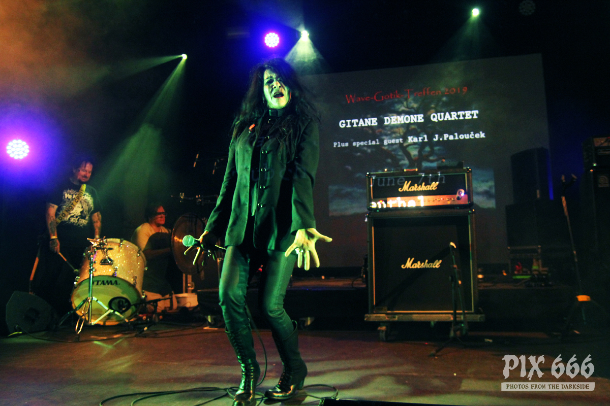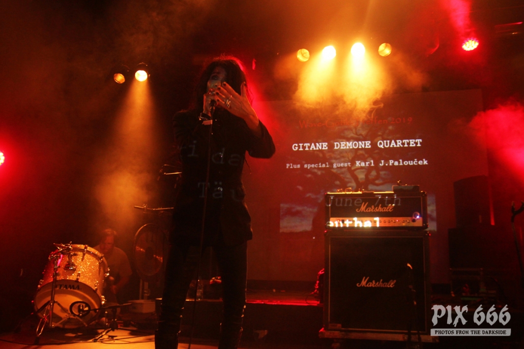 Als vorletzter Act des ersten Tages stand nun die Formation Gitane Demone Quartet auf dem Plan. Hinter diesem Projekt verbergen sich vier Veteranen aus dem Punk/Gothic Umfeld, die aus ihren früheren Projekten relativ bekannt sind. Jetzt arbeiten sie zusammen, um einen einzigartigen Sound zu kreieren, der verschiedene Genres verbindet.