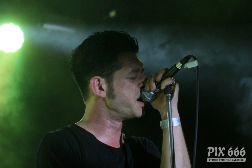 Ich begann das Wave Gotik Treffen wie schon im Vorjahr im Täubchenthal. Das war eine gute Wahl, denn gleich zu Beginn spielte eine meiner Lieblingsbands. Kurz nach 16 Uhr waren wenige Leute am Einlass, also kam man schnell in die Location.