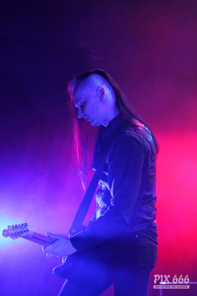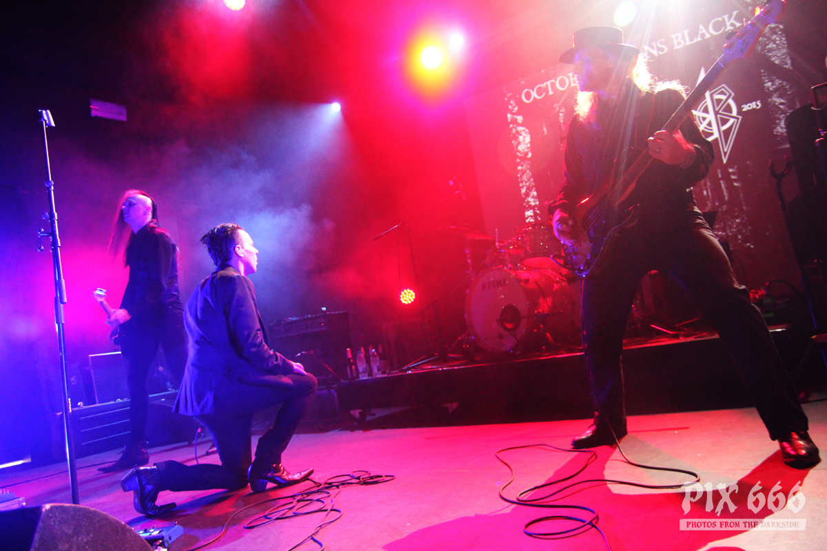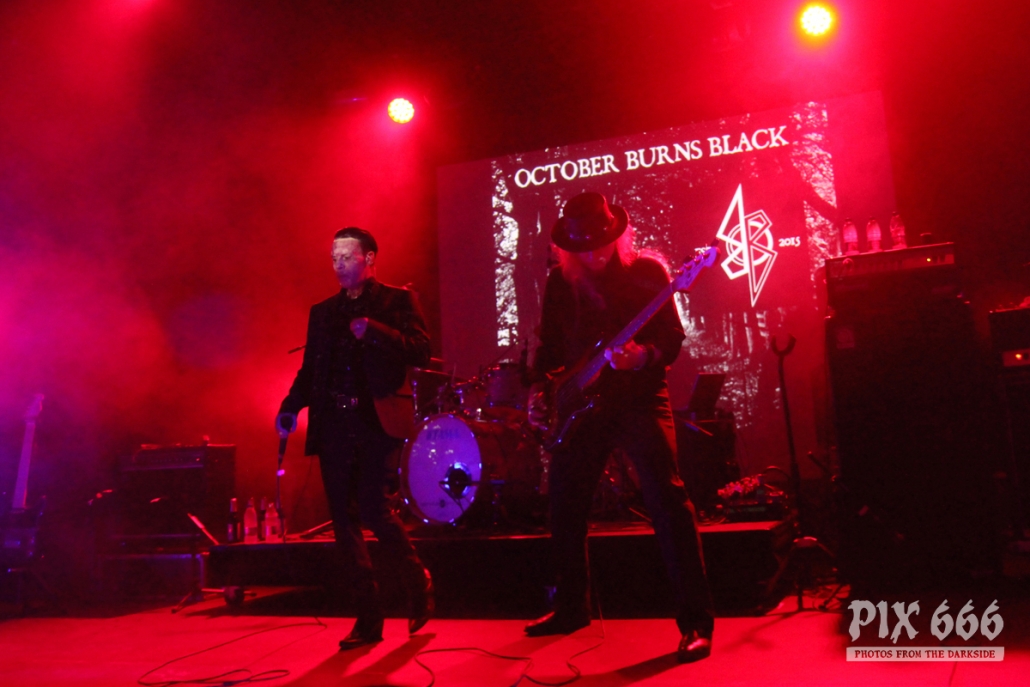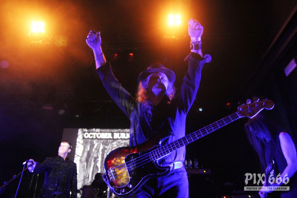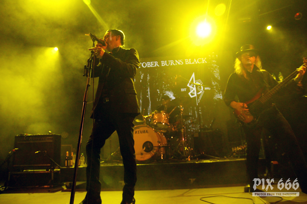 Als zweite Band im Täubchenthal waren October Burns Black an der Reihe. Die Band wurde 2015 gegründet. Die Band konnte mit erfrischendem Wave und Gothic Rock Sound absolut überzeugen. Der Club war während ihres Auftrittes sehr gut gefüllt – von Anfang bis Ende. Die Fans waren total begeistert. Auch der obere Bereich, von dem man einen wunderbaren Blick zur Bühne hatte, war jetzt richtig voll. Über das ganze Konzert hinweg war die Bühne in coole Lichter gehüllt.