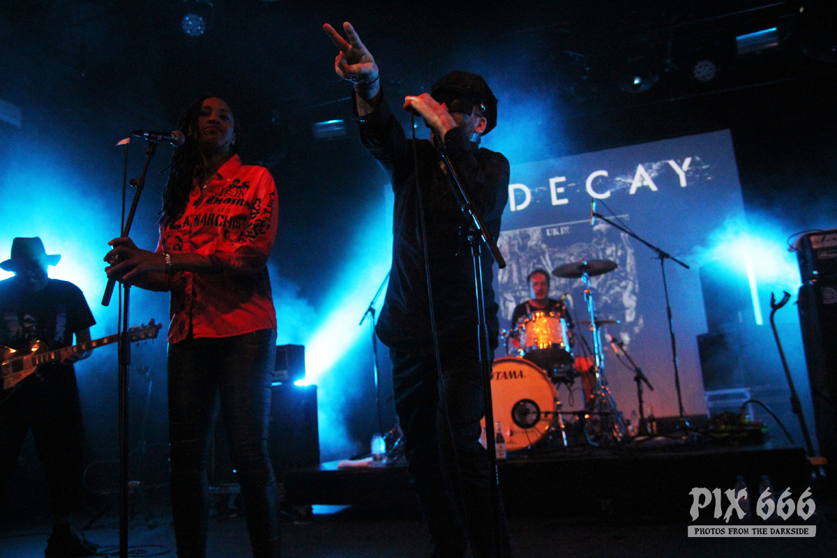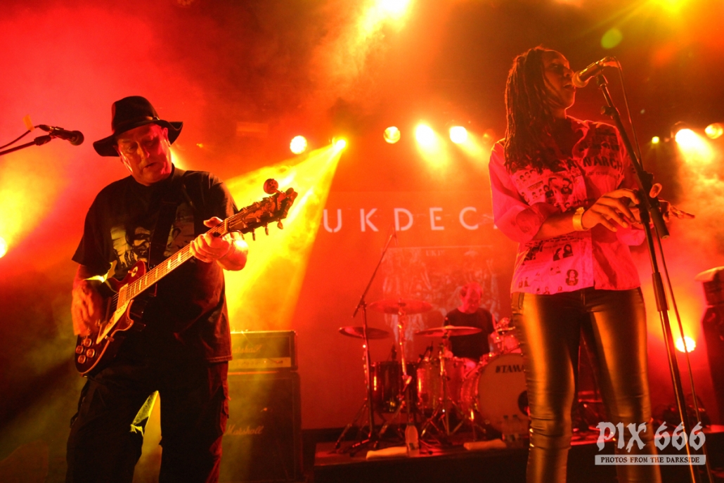 UK Decay wurden vor etwa 40 Jahren gegründet und waren damals eine der führenden Bands im Post Punk Genre. Später wurde es viele Jahre still um die Band. Im Jahr 2008 kam es zur Reunion und einigen Auftritten. 2013 wurde das zweite Studioalbum veröffentlicht. Die Band aus Luton in England begrüßte das Publikum auf Deutsch: „Guten Abend“.