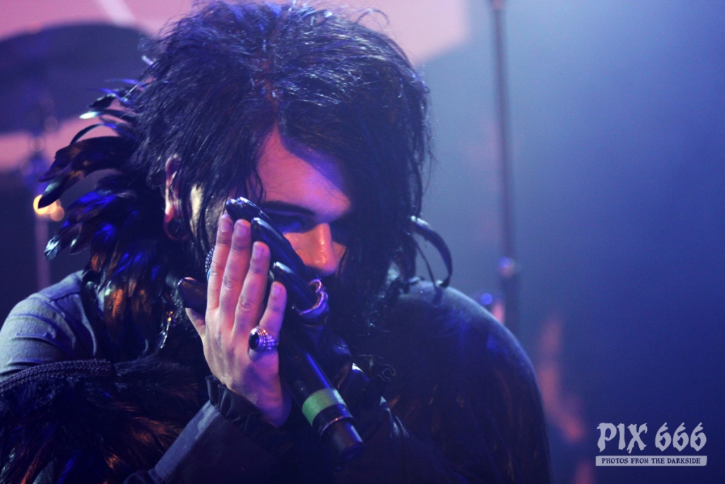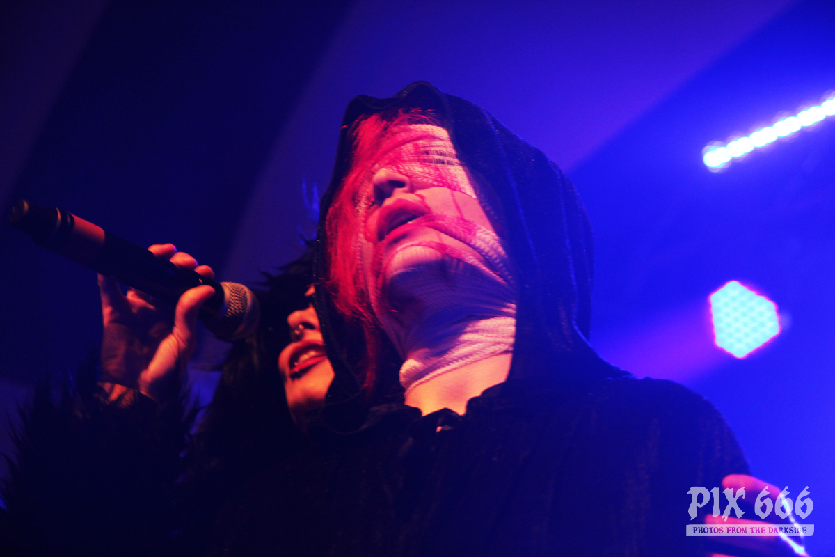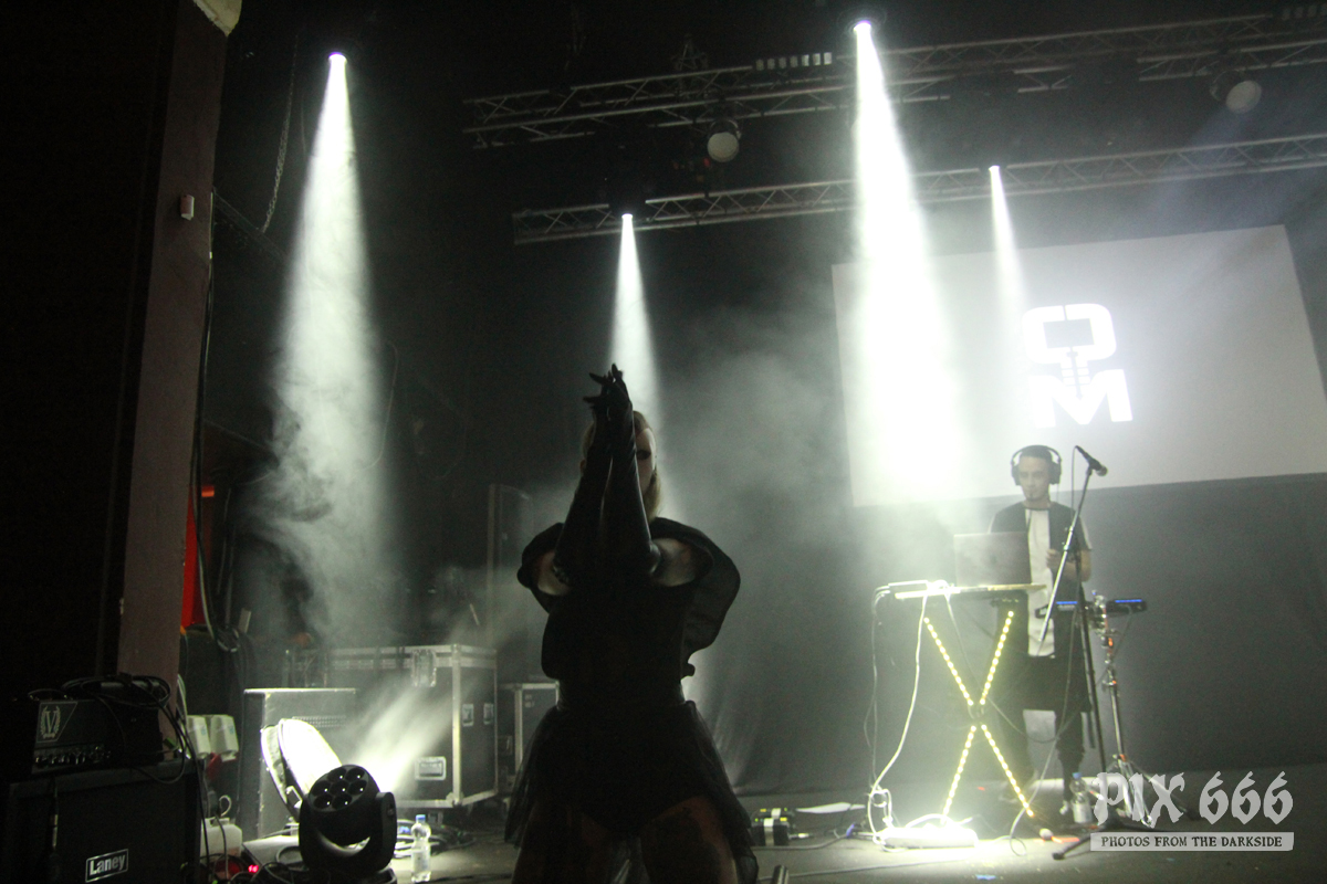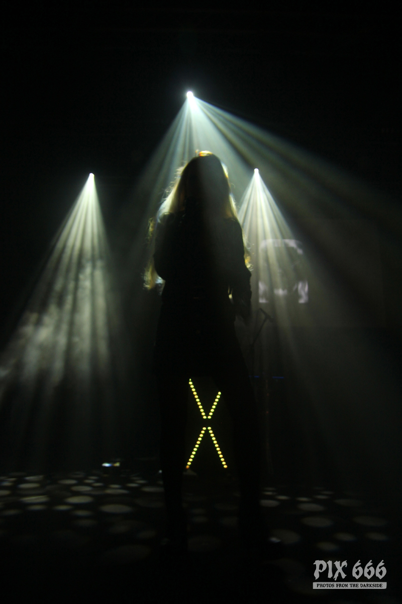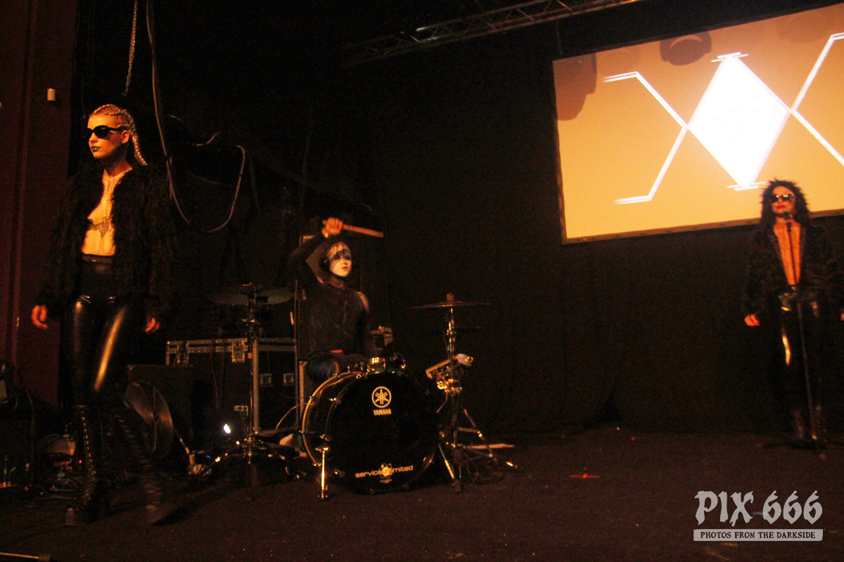 Der Auftritt von Sanguis Et Cinis begann mit Verspätung. Es gab jetzt einen Stau am Ausgang und immer noch Wartezeiten beim Einlass. Es lagen noch die Glitzer Teilchen auf der Bühne, die zum Ende des Auftrittes von Grausame Töchter auf der Bühne durch die Gegend flogen. Nun war es endlich Zeit für ein ganz besonderes Konzert. Sanguis Et Cinis spielen hier zum ersten Mal seit sehr vielen Jahren wieder live. Die Band wurde 1994 gegründet und löste sich 2007 auf. Kurz danach gründete Sänger Eve seine neue Band Lolita Komplex.