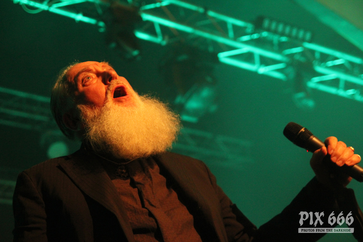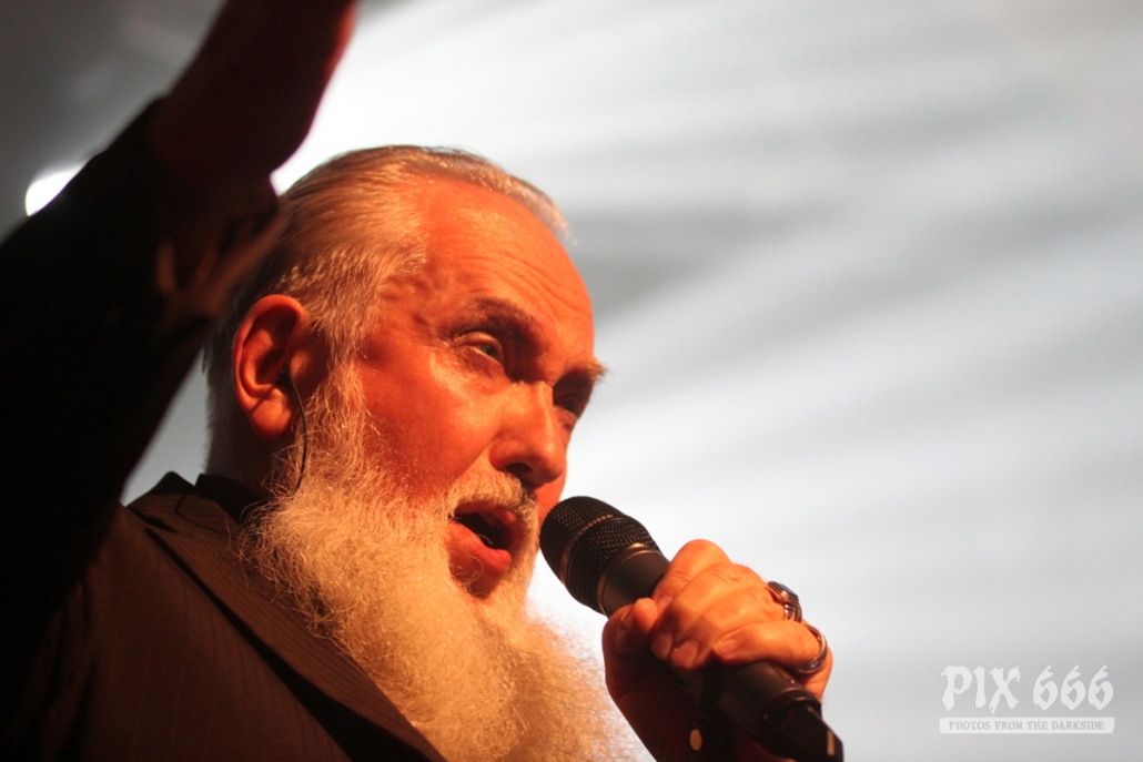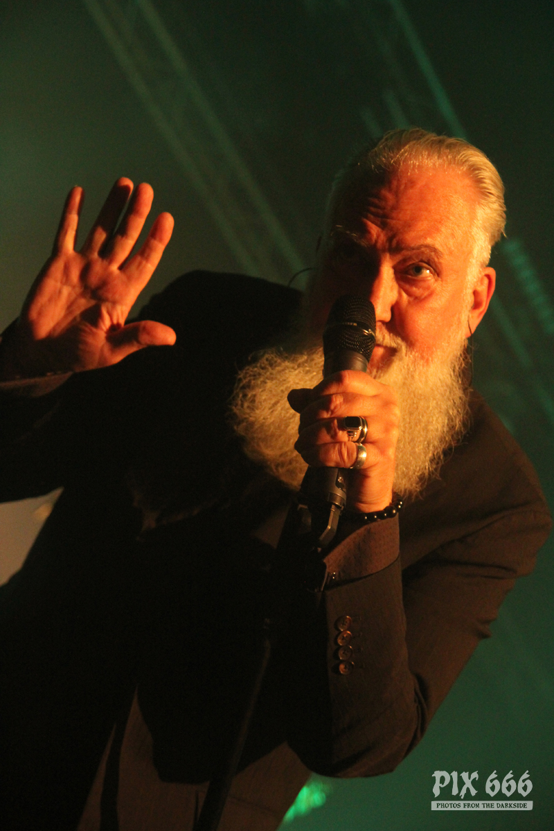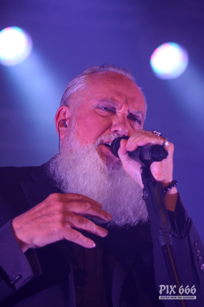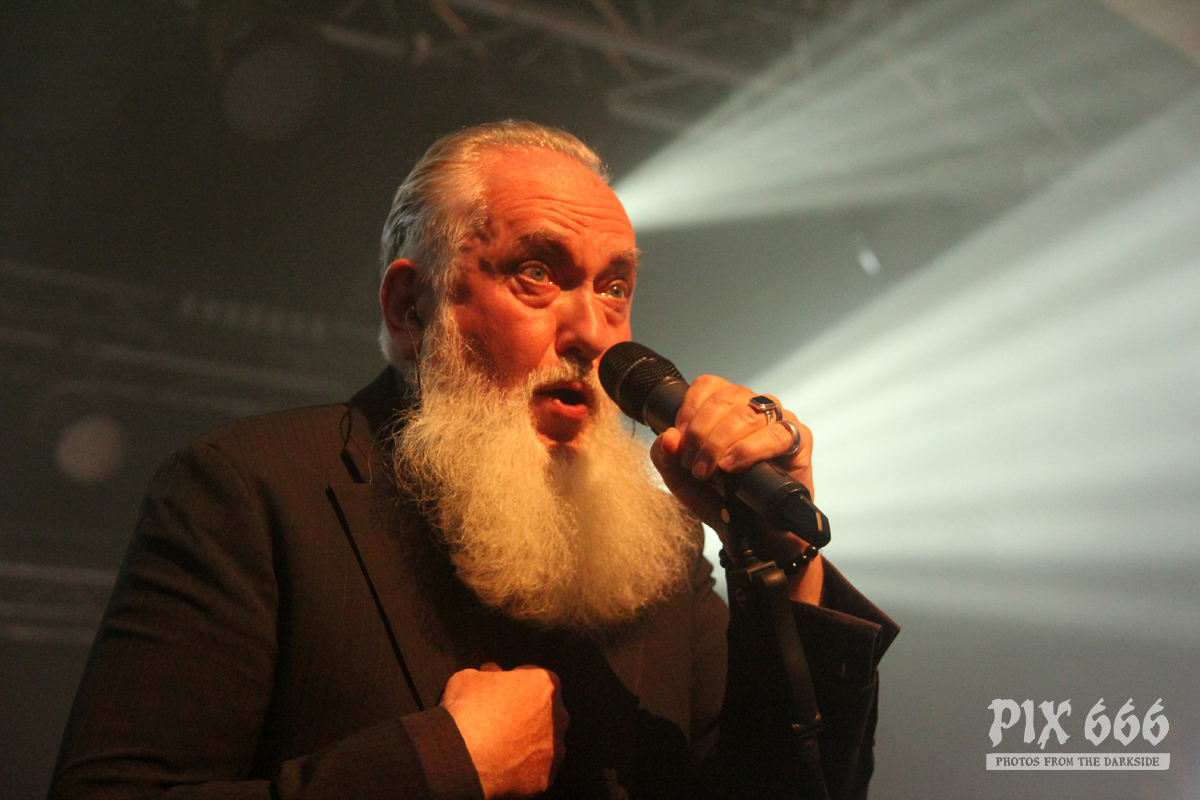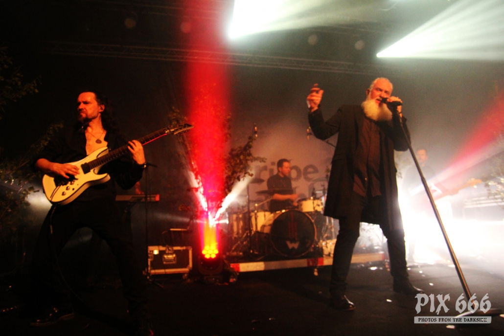 Joachim Witt befindet sich gerade auf großer Refugium Tour mit Orchester. Viele dieser Shows waren ausverkauft. Beim Wave Gotik Treffen hatten die Orchester Musiker allerdings Pause und war mit seiner Band auf der Bühne. Sie hatten die coole Bühnen Dekoration der Rübezahl Tour mit nach Leipzig gebracht. Das Konzert begann mit dem Opener vom Album Rübezahl ‚Herr Der Berge‘. Joachim Witt begrüßte das Publikum in Leipzig mit den Worten: „Schön wieder da zu sein, aber Mal sehen, wie lange noch“ Damit machte er auf lustige Art eine Anspielung auf sein Alter und verharrte dann mit dem Gesicht, als sei die Totenstarre eingetreten. Das kam beim Publikum sehr gut an – Joachim Witt war sehr cool drauf und übertrug seine gute Laune auf die Fans – er war wirklich total lustig drauf . Cooler Sound und tolle Lichter untermalten die perfekte Rockshow.