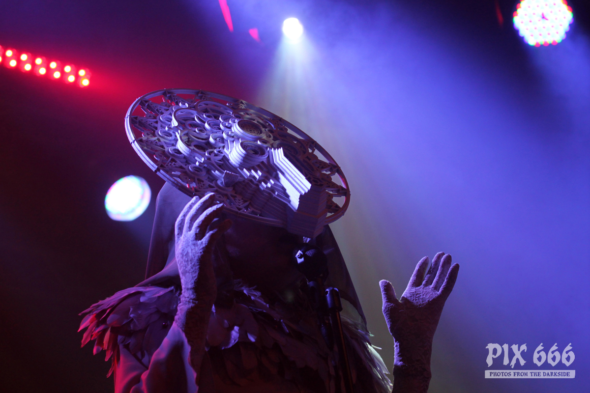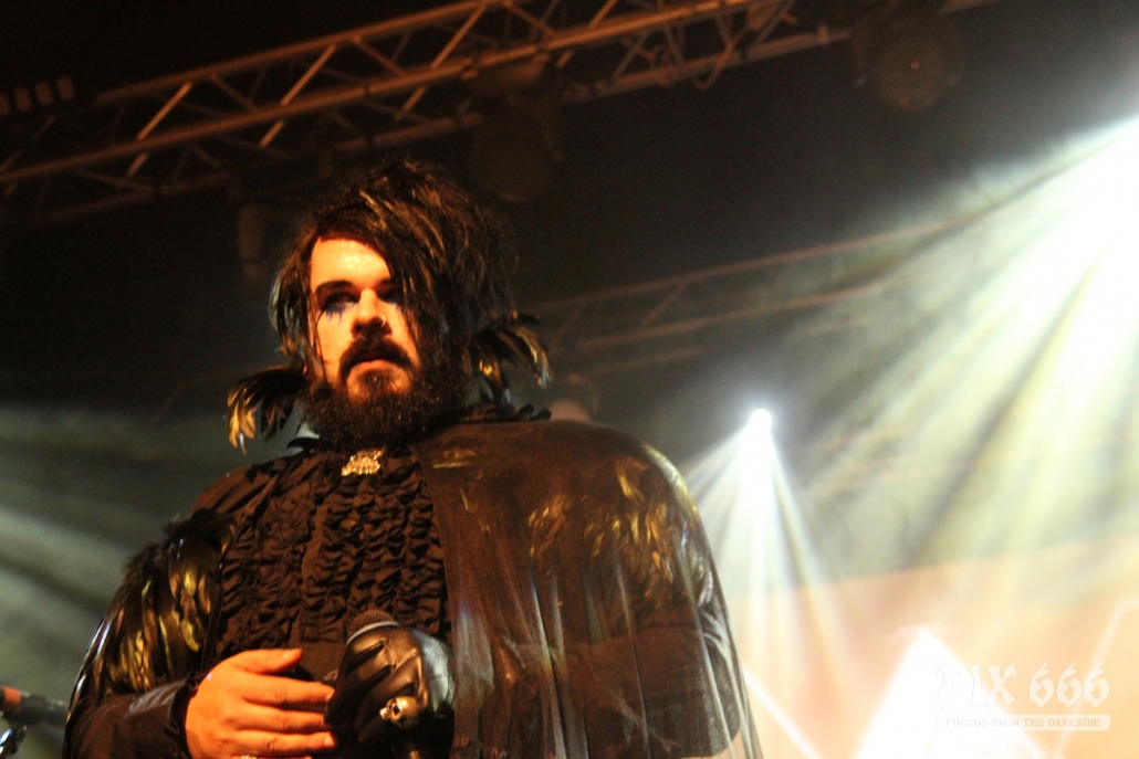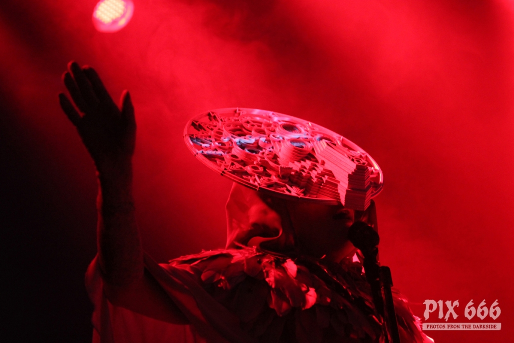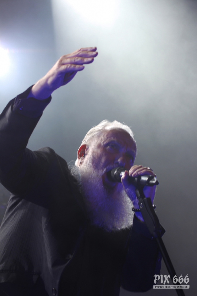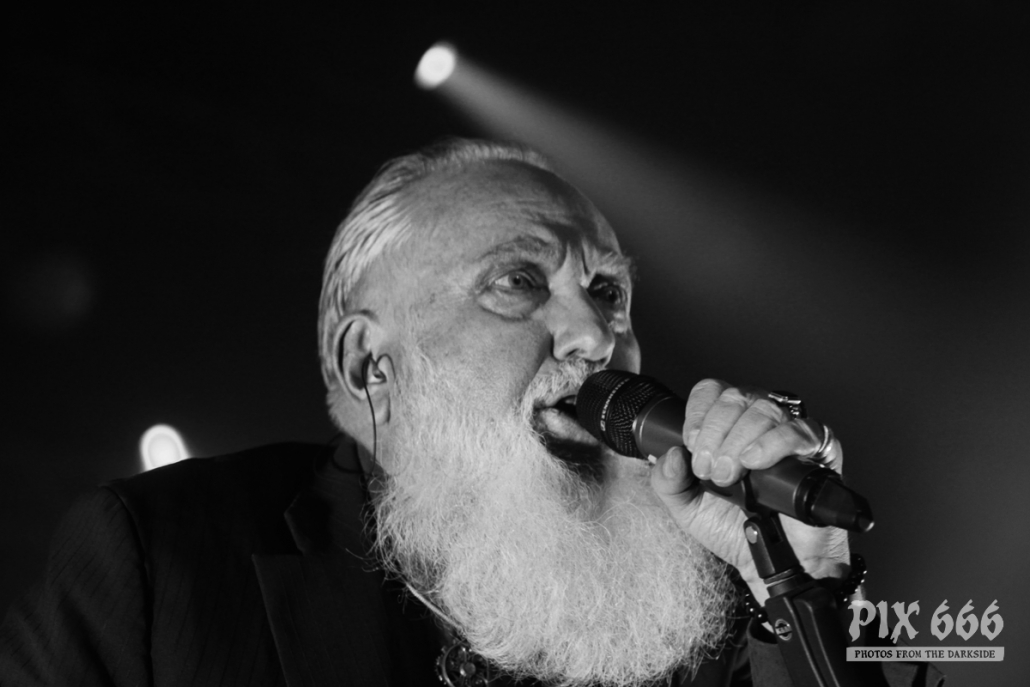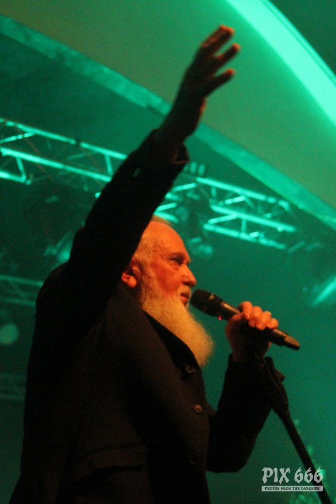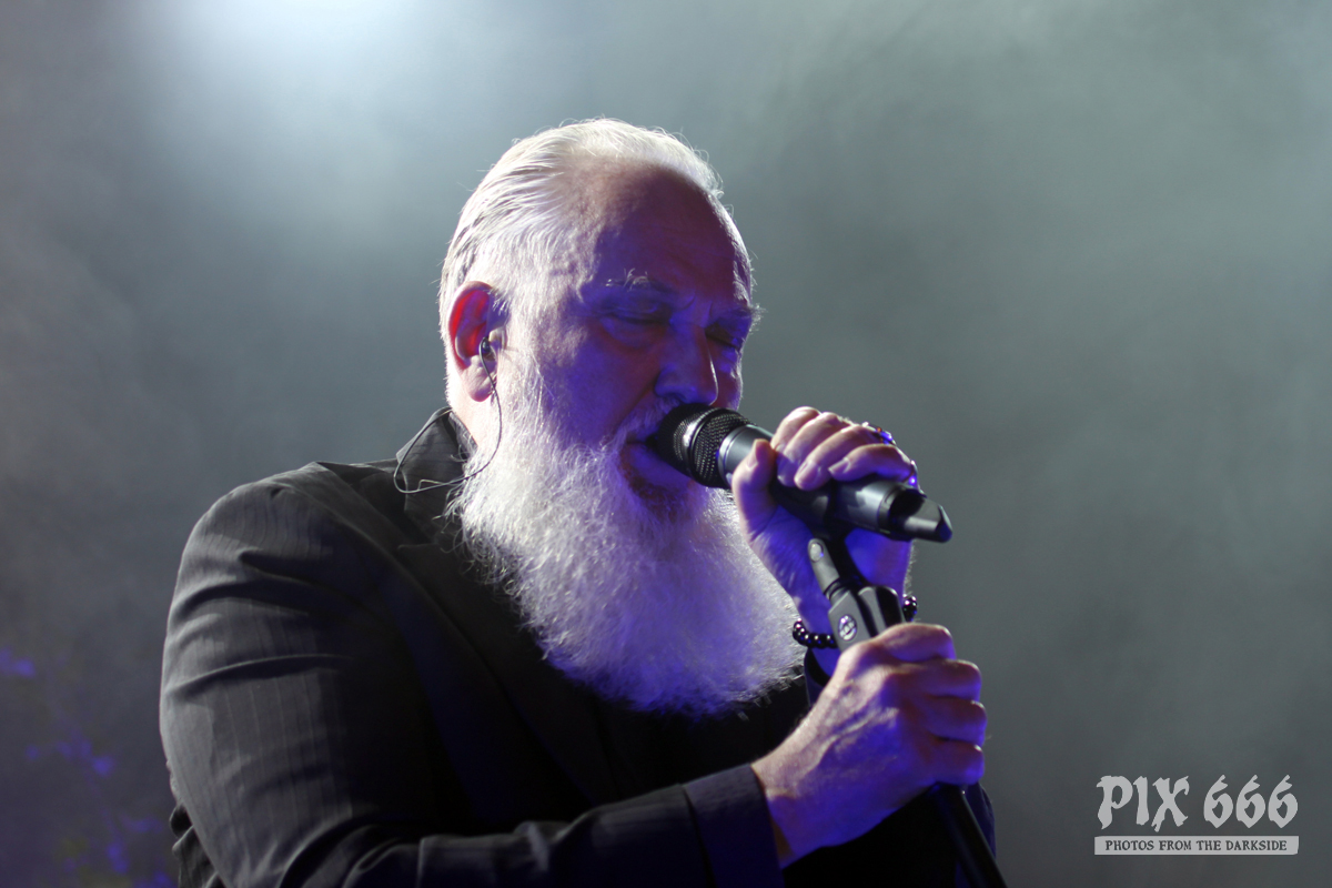 Joachim Witt befindet sich gerade auf großer Refugium Tour mit Orchester. Viele dieser Shows waren ausverkauft. Beim Wave Gotik Treffen hatten die Orchester Musiker allerdings Pause und war mit seiner Band auf der Bühne. Sie hatten die coole Bühnen Dekoration der Rübezahl Tour mit nach Leipzig gebracht. Das Konzert begann mit dem Opener vom Album Rübezahl ‚Herr Der Berge‘. Joachim Witt begrüßte das Publikum in Leipzig mit den Worten: „Schön wieder da zu sein, aber Mal sehen, wie lange noch“ Damit machte er auf lustige Art eine Anspielung auf sein Alter und verharrte dann mit dem Gesicht, als sei die Totenstarre eingetreten. Das kam beim Publikum sehr gut an – Joachim Witt war sehr cool drauf und übertrug seine gute Laune auf die Fans – er war wirklich total lustig drauf . Cooler Sound und tolle Lichter untermalten die perfekte Rockshow.