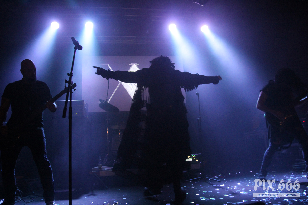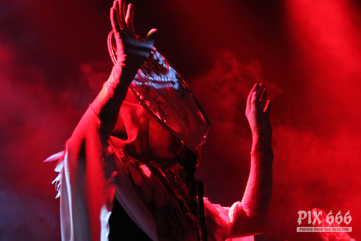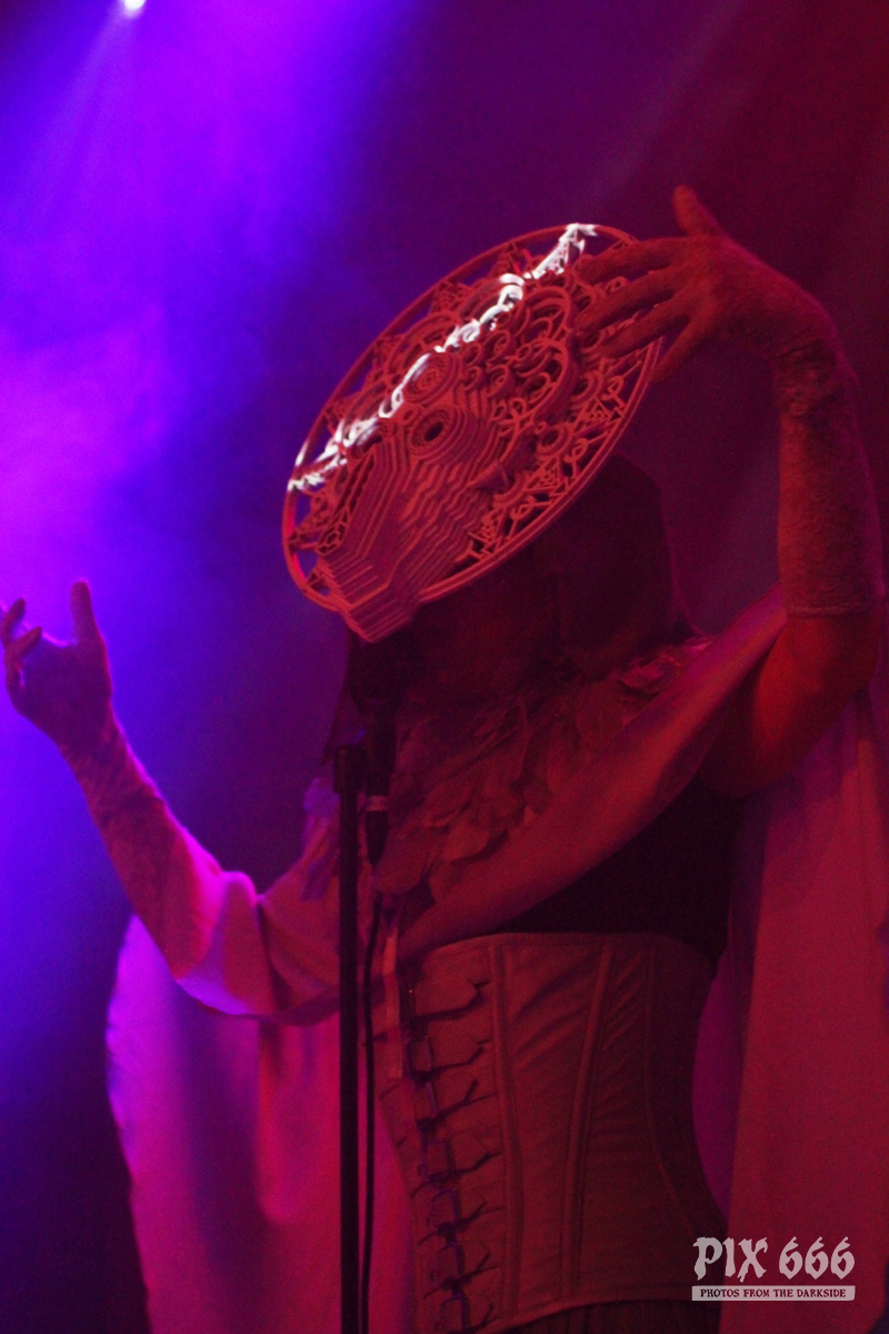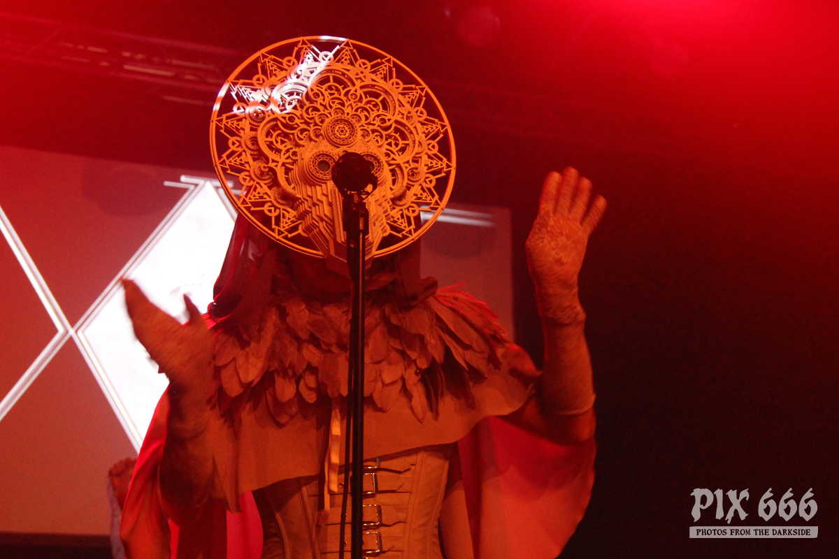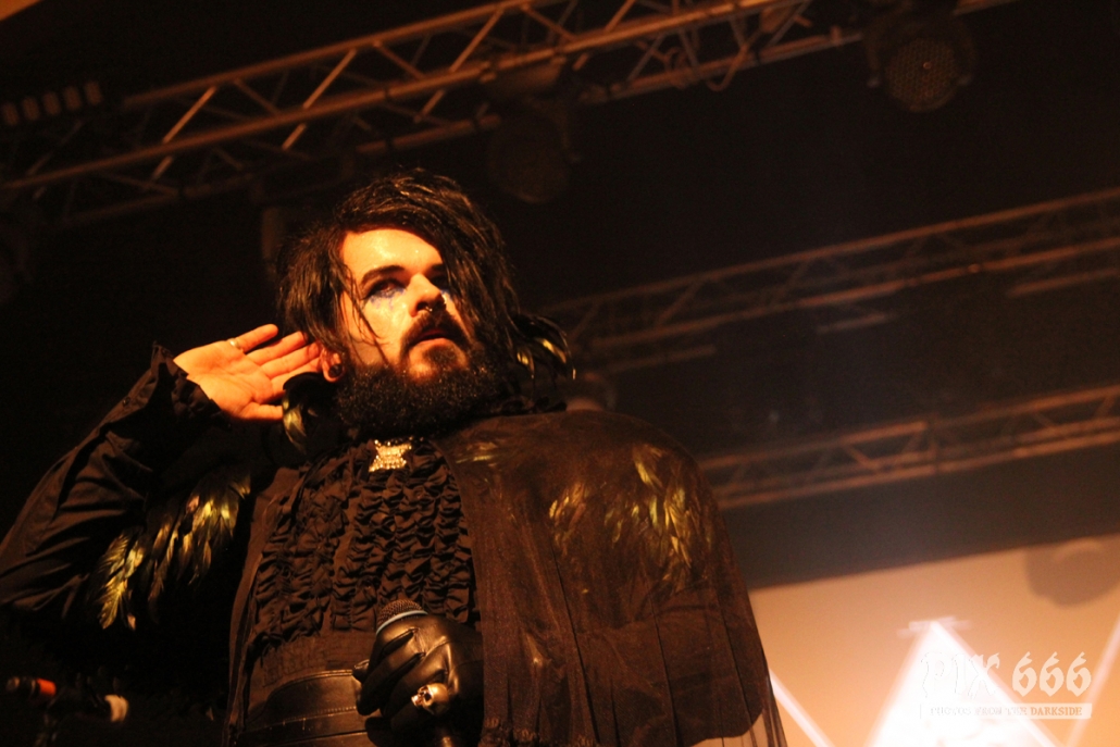 Beim Wave Gotik Treffen präsentierten Sanguis Et Cinis die Songs ihrer ersten vier Alben von 1994 an. Eve Evangel hatte ein geiles Kostüm an, aber er muss darin geschwitzt haben wie die Hölle – es war immer noch so sehr warm und die Luft war sehr stickig im Felsenkeller. „Einige von euch waren vielleicht noch nicht Mal geboren, als die Songs entstanden sind“ sagte Eve. Doch die emotionale Show mit messerscharfem Gitarrensound kam beim ganzen Publikum total gut an, egal in welchem Alter die Fans waren. Eve sang einige Male auf den Knien, versunken in die alten Songs. Gründungsmitglied Ashley Dayour konnte beim Wave Gotik Treffen nicht dabei sein, da er zu tun hat für seine Bands Whispers In The Shadow und The Devil & The Universe.