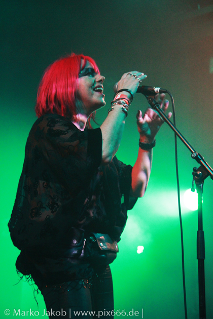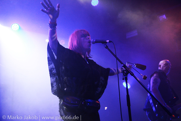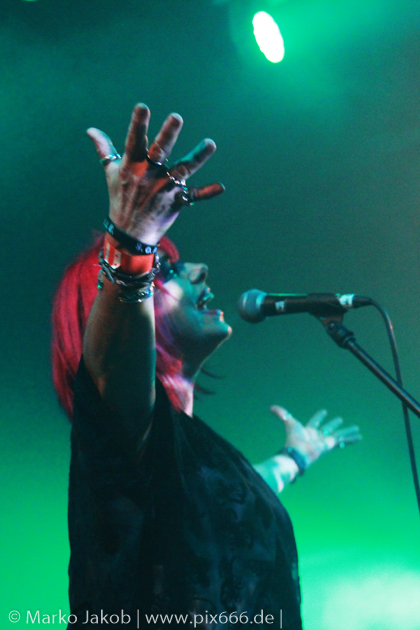 Das Täubchenthal war immer noch total gefüllt und die Besucher standen jetzt sogar bis zum Eingangsbereich. Das letzte Album liegt schon fast 10 Jahre zurück, in dem Jahr löste sich die Band auch offiziell zum zweiten Mal auf. Trotzdem treten sie ab und zu mal live auf und waren wie im letzten Jahr wieder zu Gast in Leipzig beim Wave Gotik Treffen. Die Mischung aus Gothic Rock und Post Punk, zusammen mit Claire’s cooler, schriller Stimme kamen beim Publikum super an. Der faszinierende Auftritt endete mit großem Jubel und beendete den ersten Festivaltag im Club Täubchenthal.