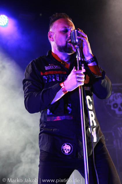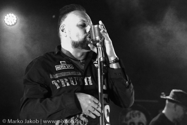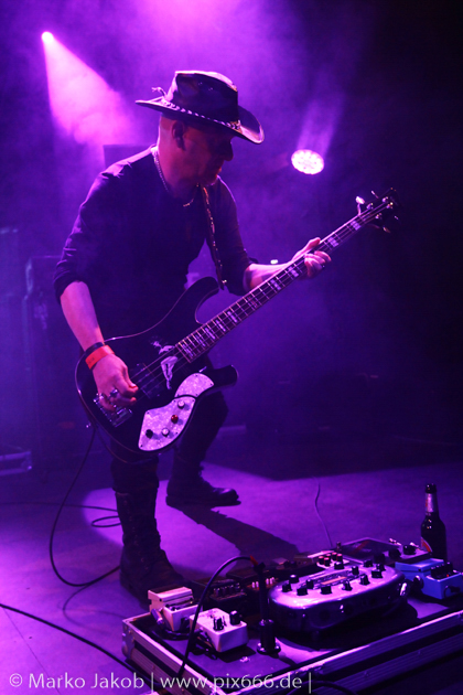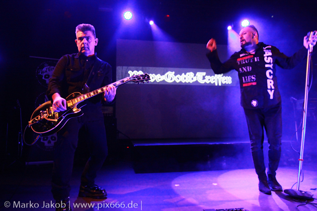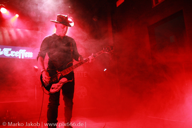 Als die MERCIFUL NUNS die Bühne betraten, war diese in Nebel eingehüllt, total passend zur düsteren Gothic Rock/Metal Musik. Massive Gitarrenwände harmonierten perfekt mit der tiefen, durchdringenden Stimme von Sänger Artaud Seth. Ein sehr cooler Auftritt mit einer super Stimmung in einer tollen Location. Immer wieder wechselte das Publikum zwischen den Bands, aber einige blieben auch den ganzen Tag im Täubchenthal. Auch die Empore war nun dicht gefüllt. Von diesem Konzert hätte das Publikum gerne noch etwas mehr gehabt, wohl auch, weil es vermutlich einer der letzten Auftritte der Band war.