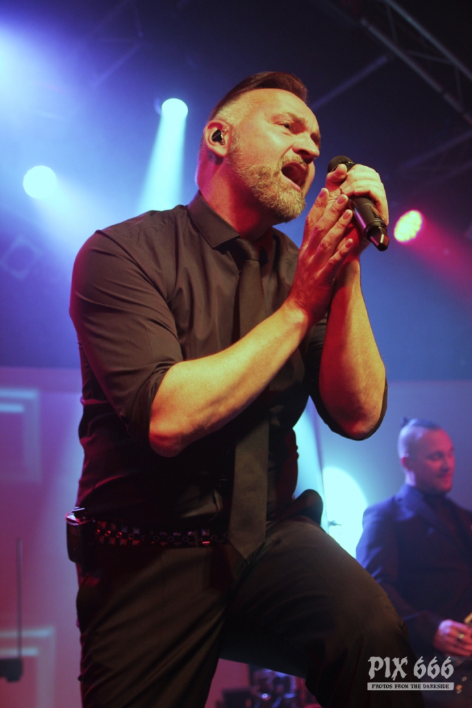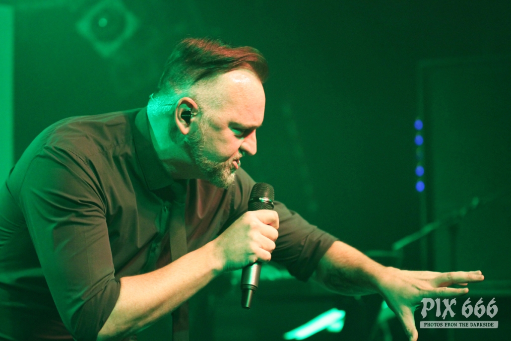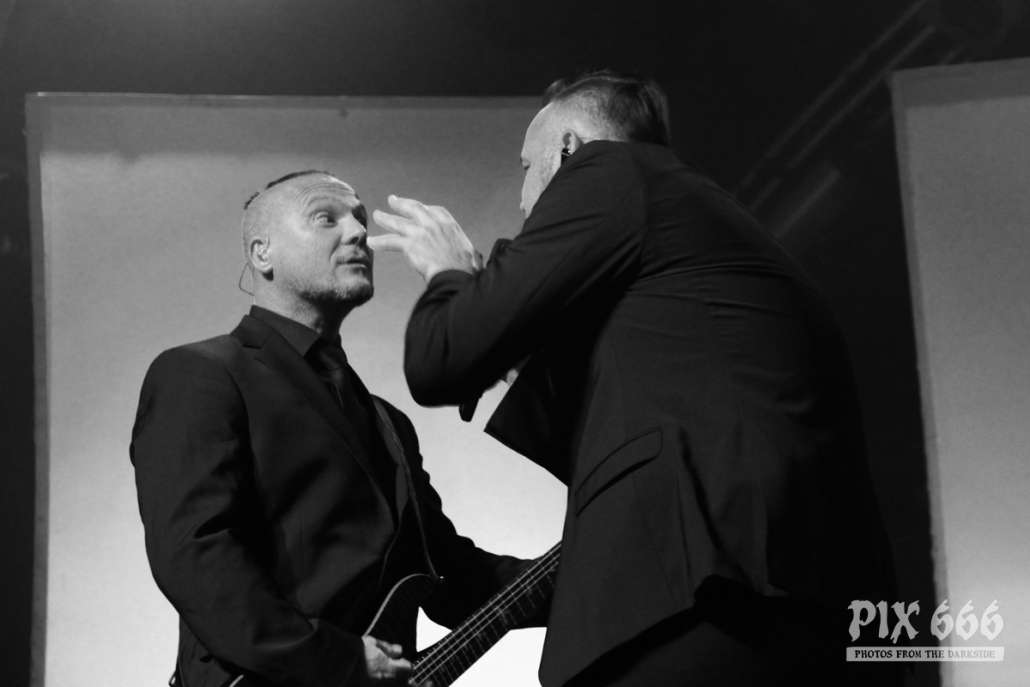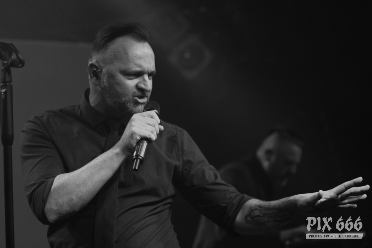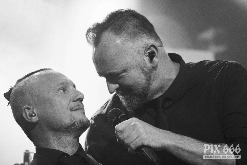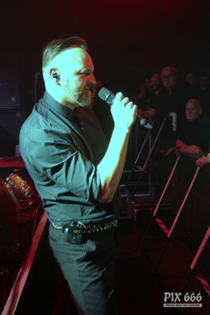 „Wollen Sie wirklich noch eins?“ Einer, der in der ‚Sendung‘ auf der Welle:Erdball nicht fehlen darf: ‚Monoton & Minimal‘. Dann bat Honey die Fans am Ausgang auf einer Liste für den Tierschutz zu unterschreiben. „Die Platten sind ja bestimmt schon ausverkauft“ fügte er hinzu. Es schien nicht aufzuhören … es folgte der nächste Song – „Weil es richtig gut war mit Ihnen“. Das Fehlfarben Cover ‚Es geht voran‘ forderte nochmal alles von den Fans ab. Viele aus dem Publikum waren nun so richtig schön angeschwitzt für die ‚Return Of The Living Dead Party‘, die im Anschluss an das Konzert in der Markthalle stattfand. Nun stellte Honey dem Publikum seine Band incl. sich selbst vor: neben dem Sänger waren in Hamburg c0zmo (Synthesizer, Programmierung) und die weiblichen Stimmen von M.A. Peel und MissMoonlight mit dabei. Etwa 800 Leute feierten über drei Stunden lang ausgelassen, ehe Honey Casi, den Sänger von Rroyce zu sich rief. Und tatsächlich gab es noch eine ganz besondere Zugabe – Die Tourhymne ‚A New England‘, die Welle:Erdball und Rroyce gemeinsam performten.