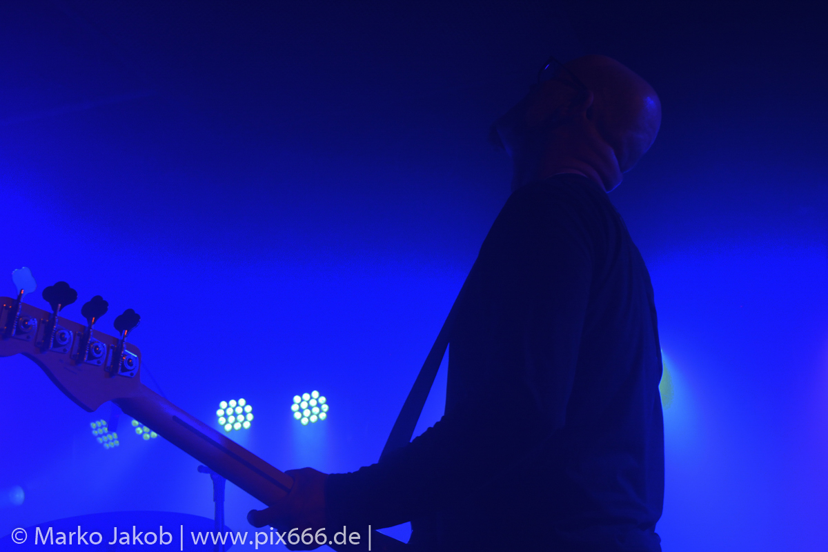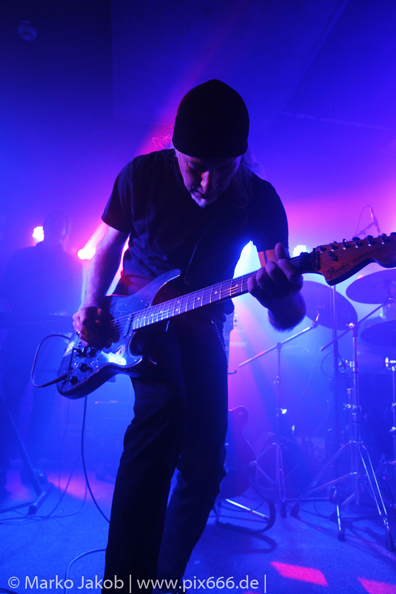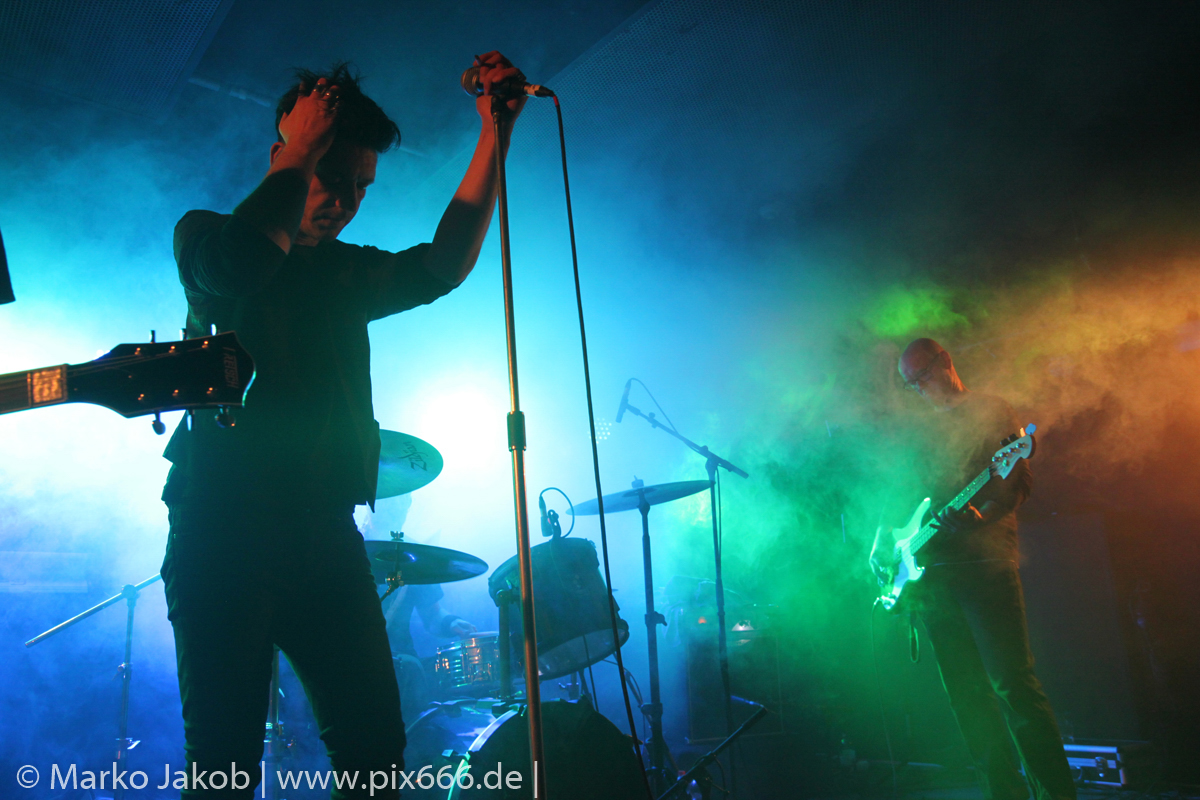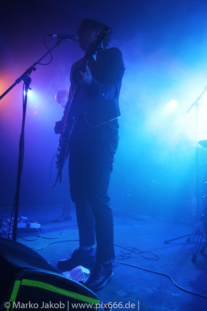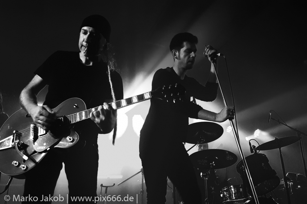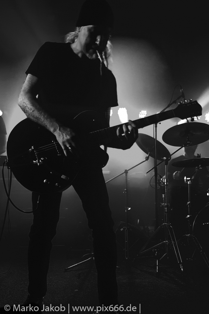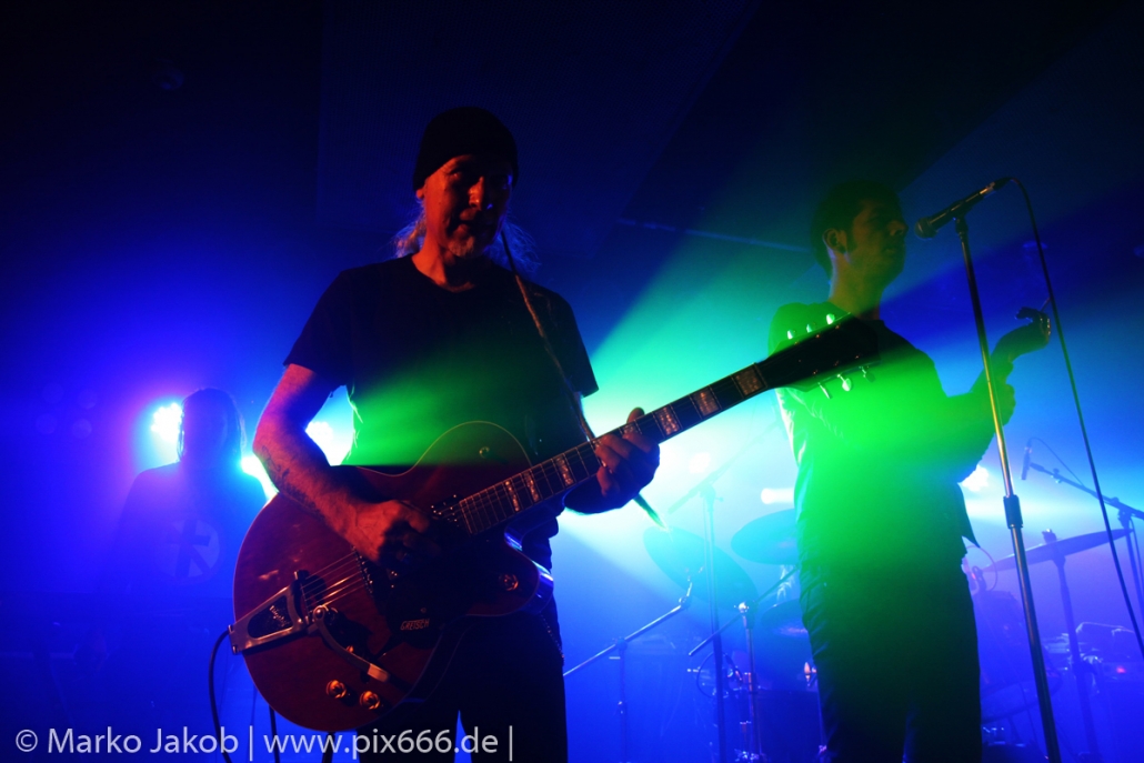 Der geplante Beginn verzögerte sich etwas, das Konzert begann etwa 20 Minuten später als geplant. Die Golden Apes begannen ihr Set mit dem Titel ‚Voykova‘, gefolgt von ‚Ignorance‘ vom aktuellen Album. Es folgten 3 weitere Songs vom Album MɅLVS. Das Publikum tauchte zusammen mit der Band in die düstere Welt der Golden Apes ein. Die Ausstrahlung von Sänger Peer Lebrecht ist beeindruckend – und er muss dafür nicht viel tun. Man merkt ihm an, wie er seine Musik lebt und fühlt. Der Club war nur fast komplett gefüllt und die Zeit verging wie im Flug. Beim Song ‚Missing‘ setzte sich Sänger Peer wie so oft an den Rand der Bühne, und zog genüsslich an seiner Zigarette. ‚Ferryman‘ war eines von nur wenigen älteren Titeln des Abends. Nach etwa fünf Zigaretten fand ein tolles, etwa 45 minütiges Konzert mit dem Song ‚The Happy Losers Sweet Delution‘ vom 2012er Album ‚Riot‘ seinen Abschluss. Im Januar 2019 werden die Berliner unter anderem in Frankreich und der Schweiz auftreten.
