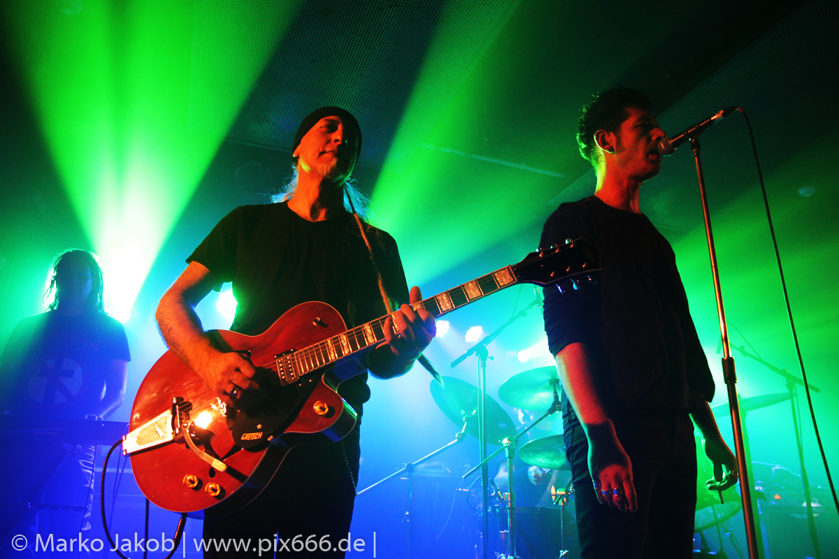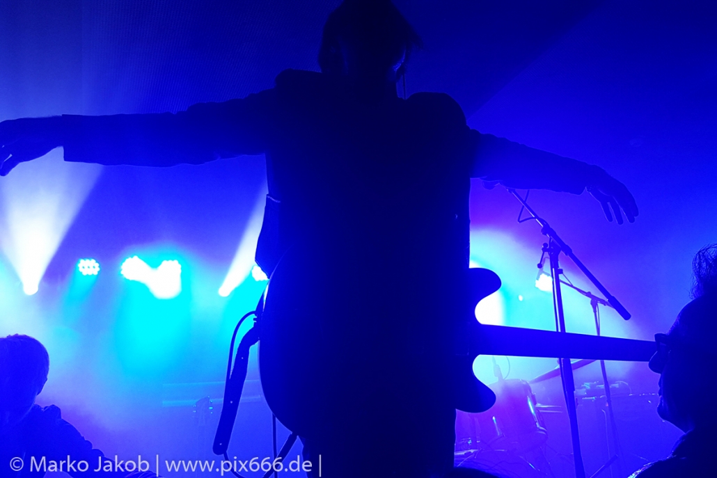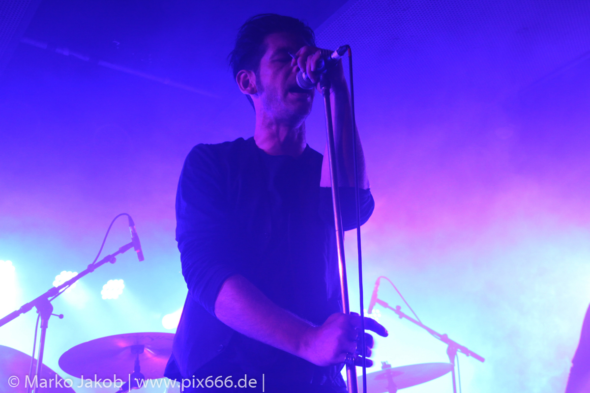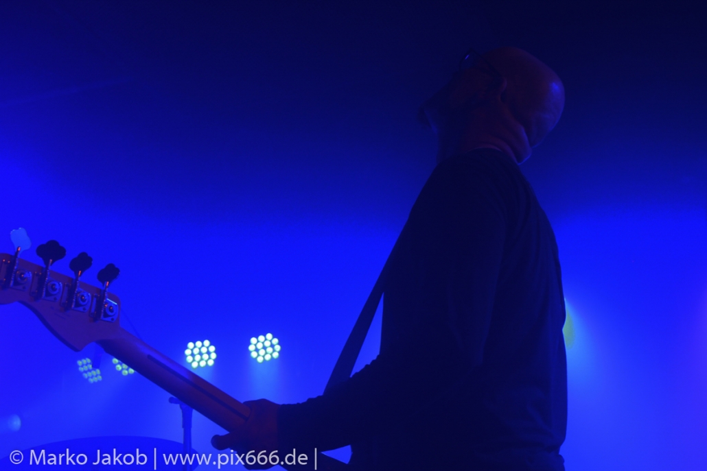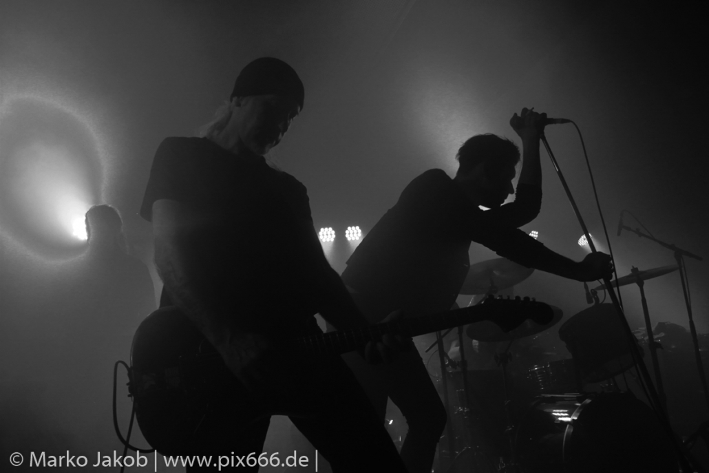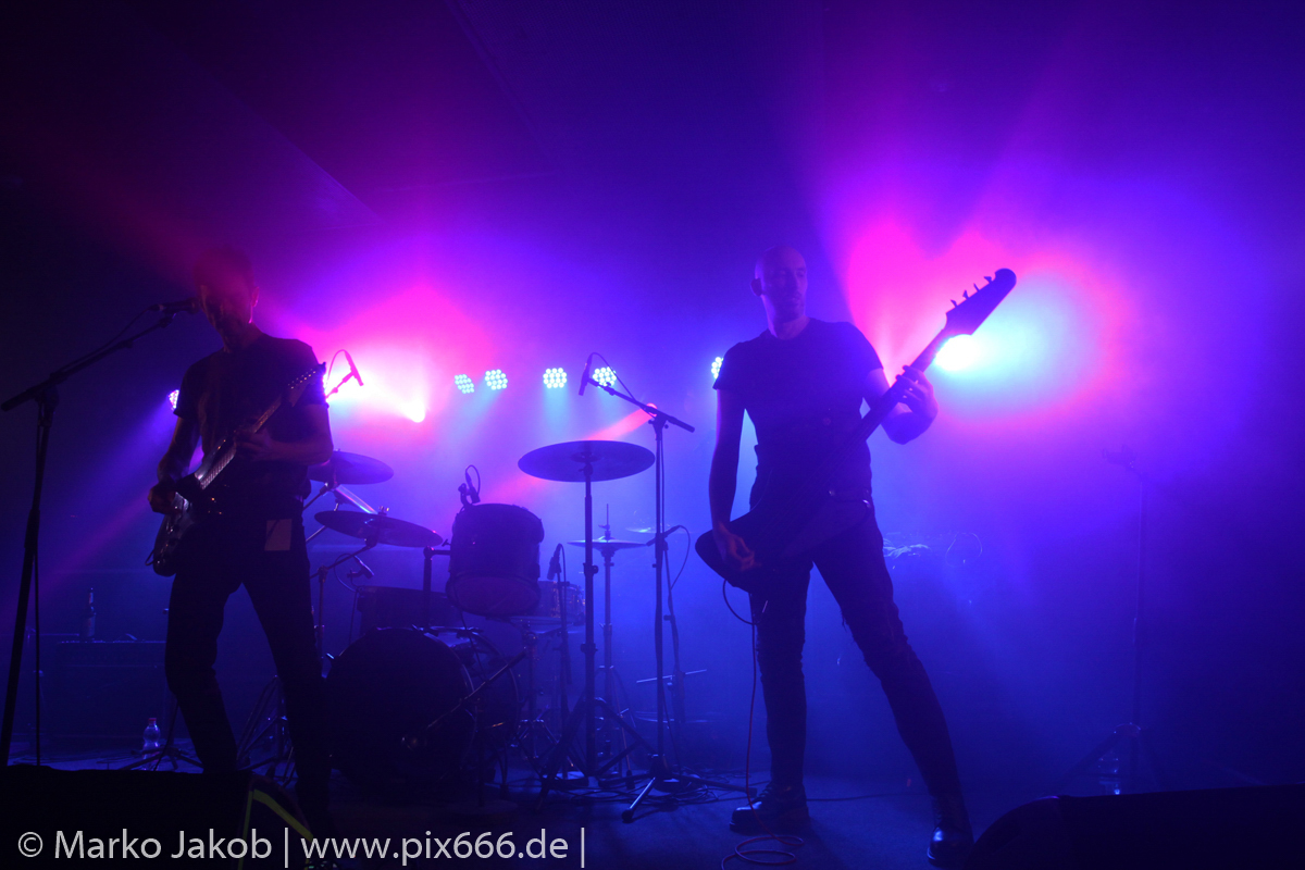 Der geplante Beginn verzögerte sich etwas, das Konzert begann etwa 20 Minuten später als geplant. Die Golden Apes begannen ihr Set mit dem Titel ‚Voykova‘, gefolgt von ‚Ignorance‘ vom aktuellen Album. Es folgten 3 weitere Songs vom Album MɅLVS. Das Publikum tauchte zusammen mit der Band in die düstere Welt der Golden Apes ein. Die Ausstrahlung von Sänger Peer Lebrecht ist beeindruckend – und er muss dafür nicht viel tun. Man merkt ihm an, wie er seine Musik lebt und fühlt. Der Club war nur fast komplett gefüllt und die Zeit verging wie im Flug. Beim Song ‚Missing‘ setzte sich Sänger Peer wie so oft an den Rand der Bühne, und zog genüsslich an seiner Zigarette. ‚Ferryman‘ war eines von nur wenigen älteren Titeln des Abends. Nach etwa fünf Zigaretten fand ein tolles, etwa 45 minütiges Konzert mit dem Song ‚The Happy Losers Sweet Delution‘ vom 2012er Album ‚Riot‘ seinen Abschluss. Im Januar 2019 werden die Berliner unter anderem in Frankreich und der Schweiz auftreten.
