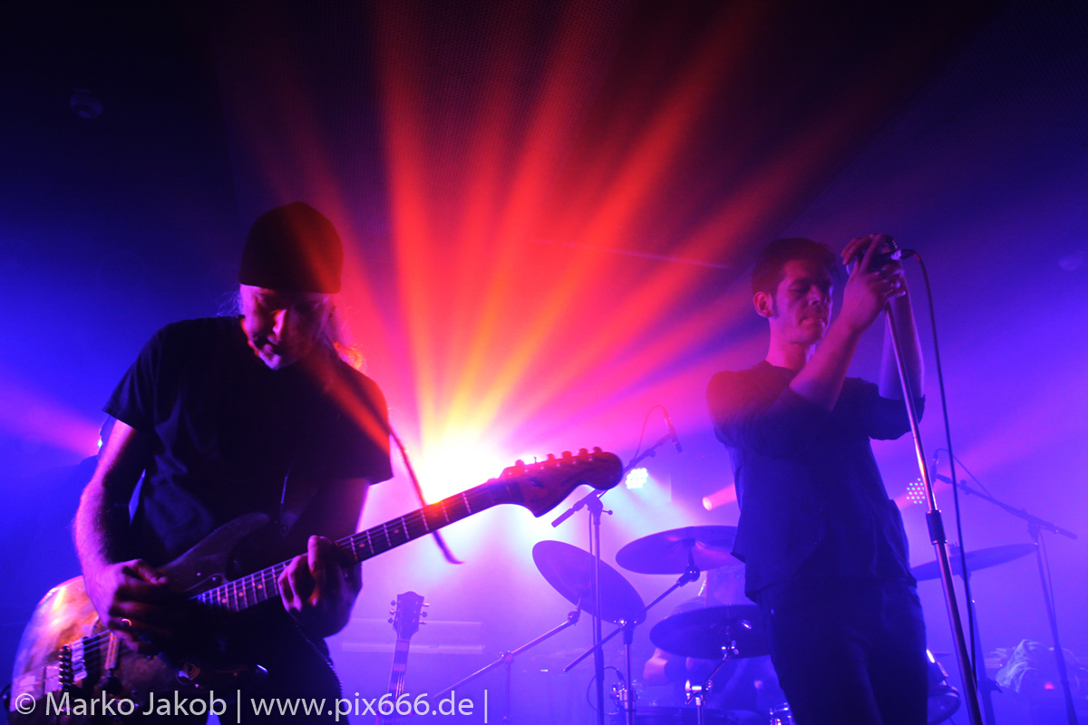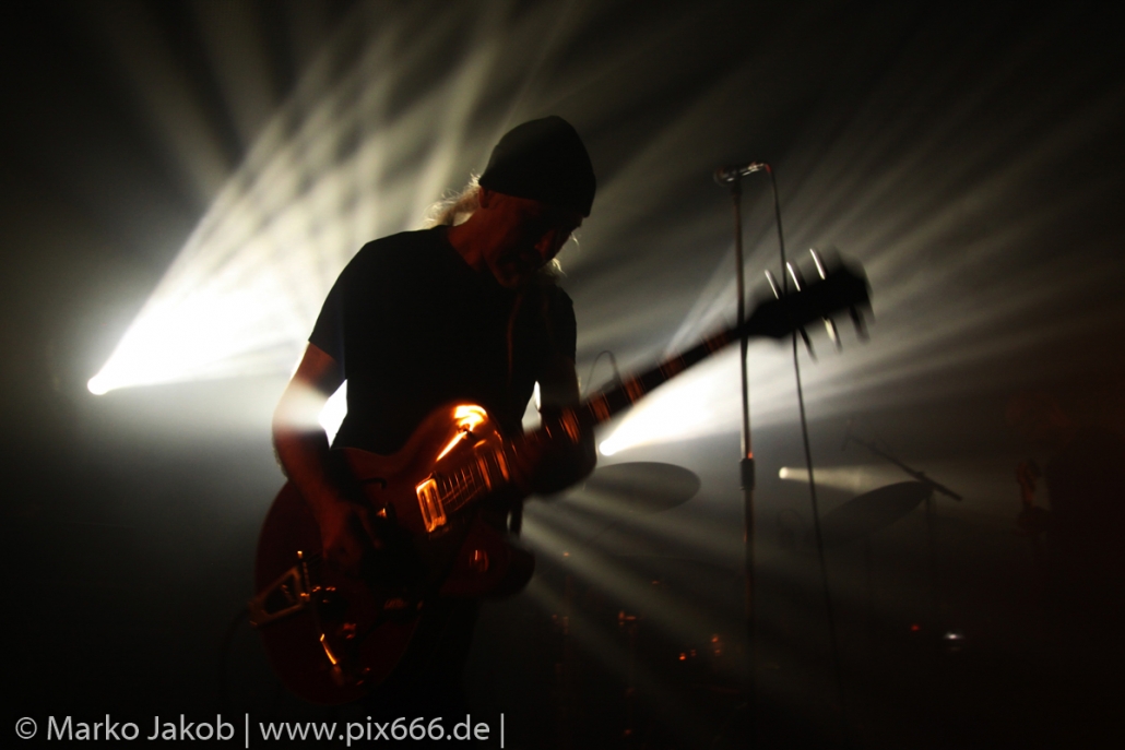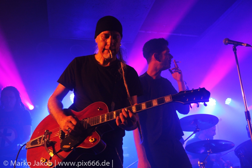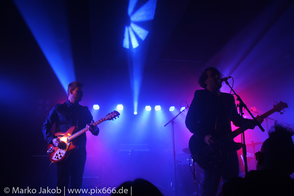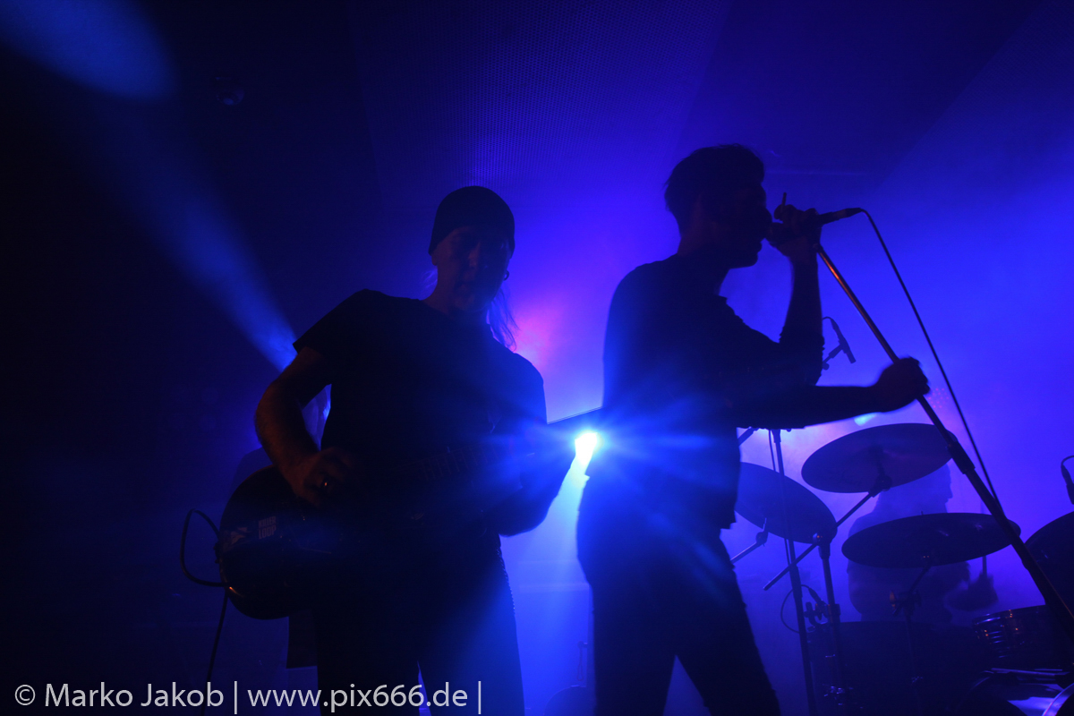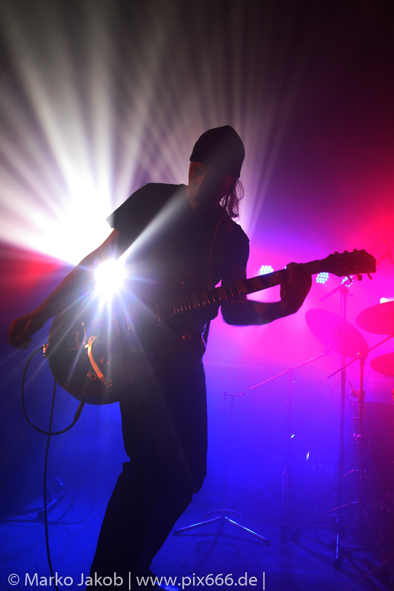 Der geplante Beginn verzögerte sich etwas, das Konzert begann etwa 20 Minuten später als geplant. Die Golden Apes begannen ihr Set mit dem Titel ‚Voykova‘, gefolgt von ‚Ignorance‘ vom aktuellen Album. Es folgten 3 weitere Songs vom Album MɅLVS. Das Publikum tauchte zusammen mit der Band in die düstere Welt der Golden Apes ein. Die Ausstrahlung von Sänger Peer Lebrecht ist beeindruckend – und er muss dafür nicht viel tun. Man merkt ihm an, wie er seine Musik lebt und fühlt. Der Club war nur fast komplett gefüllt und die Zeit verging wie im Flug. Beim Song ‚Missing‘ setzte sich Sänger Peer wie so oft an den Rand der Bühne, und zog genüsslich an seiner Zigarette. ‚Ferryman‘ war eines von nur wenigen älteren Titeln des Abends. Nach etwa fünf Zigaretten fand ein tolles, etwa 45 minütiges Konzert mit dem Song ‚The Happy Losers Sweet Delution‘ vom 2012er Album ‚Riot‘ seinen Abschluss. Im Januar 2019 werden die Berliner unter anderem in Frankreich und der Schweiz auftreten.