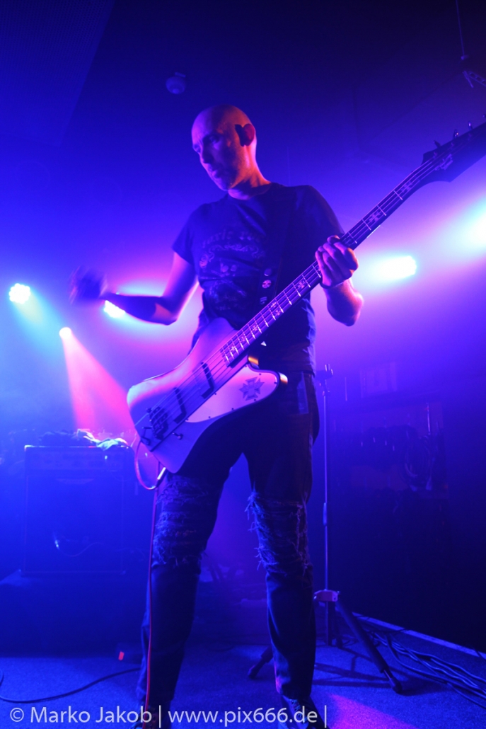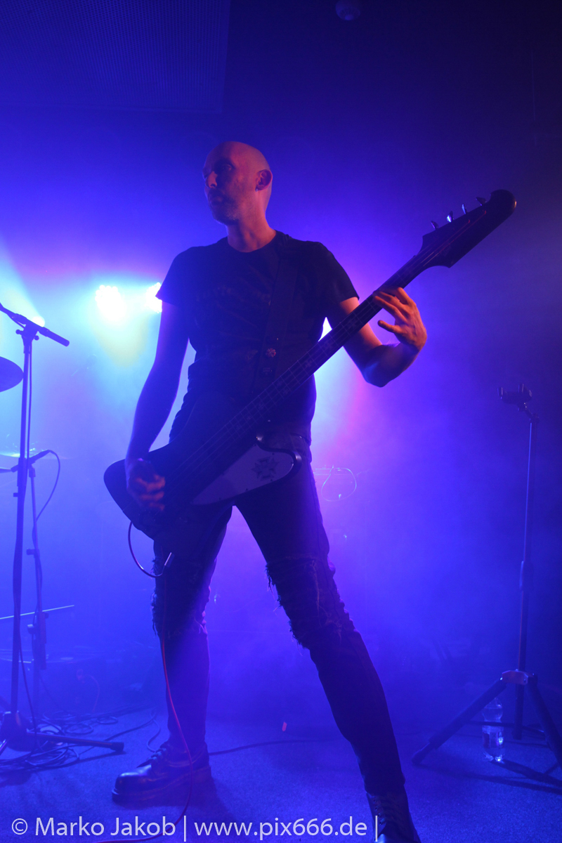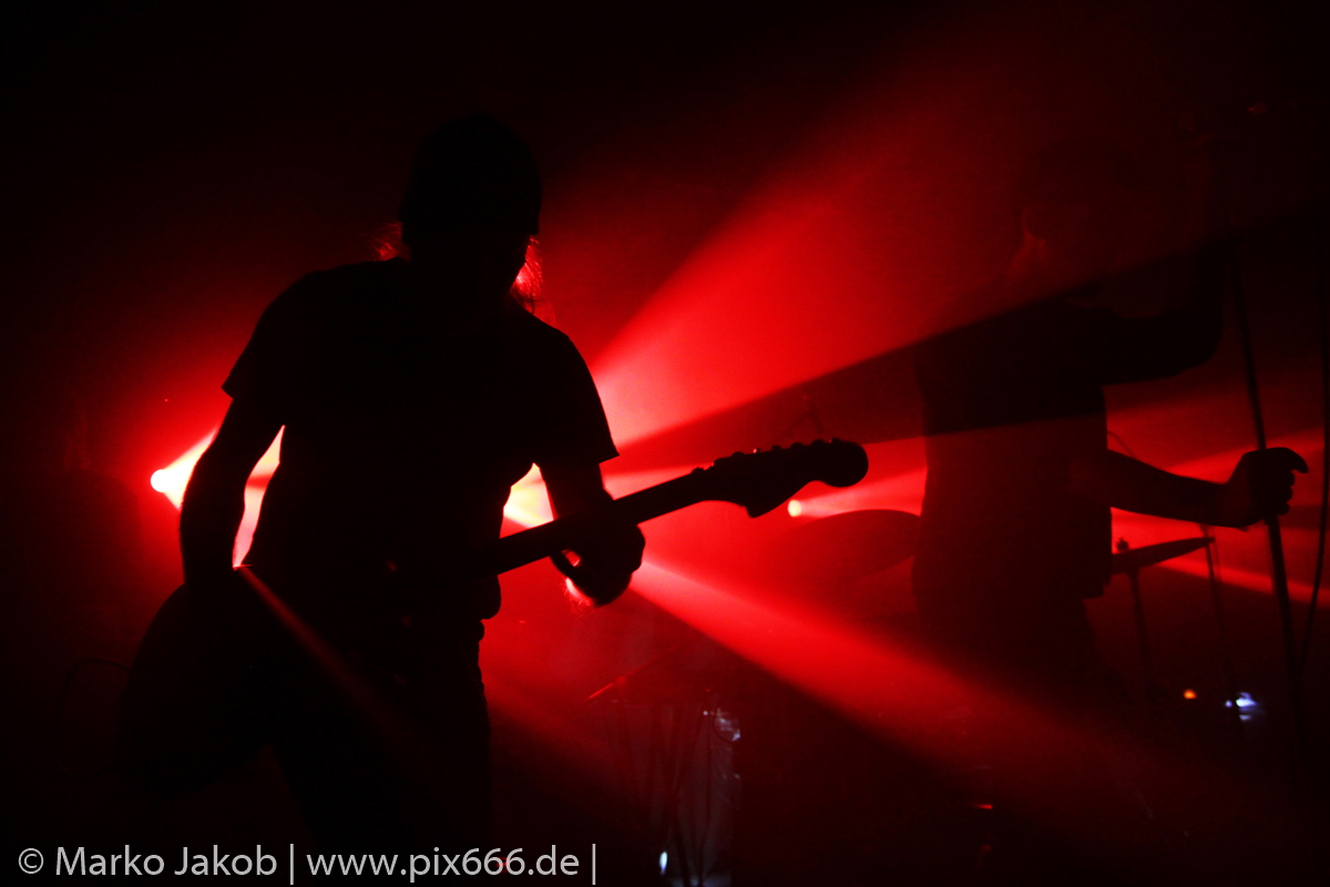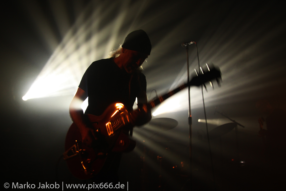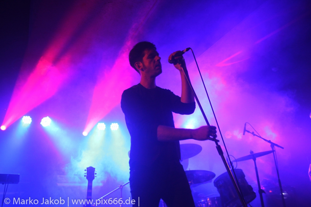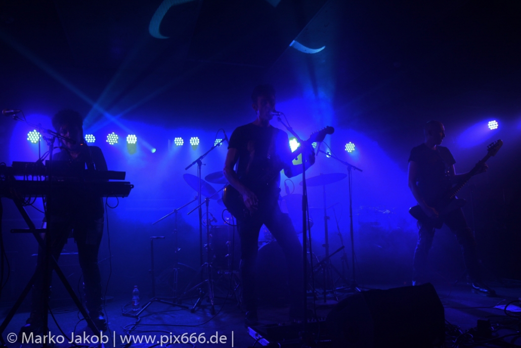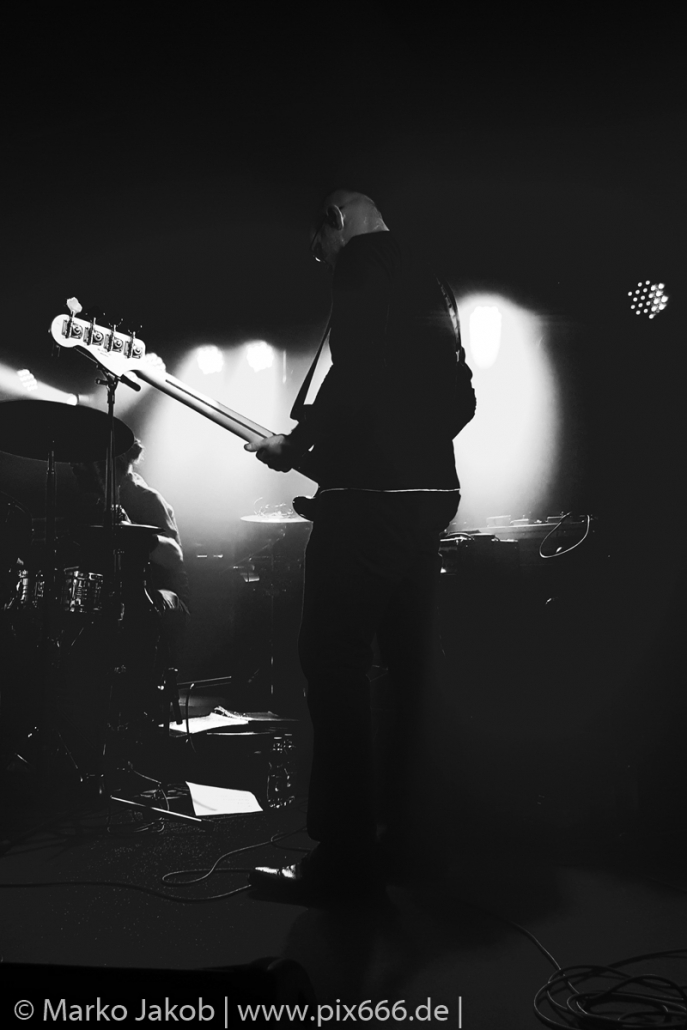 Der geplante Beginn verzögerte sich etwas, das Konzert begann etwa 20 Minuten später als geplant. Die Golden Apes begannen ihr Set mit dem Titel ‚Voykova‘, gefolgt von ‚Ignorance‘ vom aktuellen Album. Es folgten 3 weitere Songs vom Album MɅLVS. Das Publikum tauchte zusammen mit der Band in die düstere Welt der Golden Apes ein. Die Ausstrahlung von Sänger Peer Lebrecht ist beeindruckend – und er muss dafür nicht viel tun. Man merkt ihm an, wie er seine Musik lebt und fühlt. Der Club war nur fast komplett gefüllt und die Zeit verging wie im Flug. Beim Song ‚Missing‘ setzte sich Sänger Peer wie so oft an den Rand der Bühne, und zog genüsslich an seiner Zigarette. ‚Ferryman‘ war eines von nur wenigen älteren Titeln des Abends. Nach etwa fünf Zigaretten fand ein tolles, etwa 45 minütiges Konzert mit dem Song ‚The Happy Losers Sweet Delution‘ vom 2012er Album ‚Riot‘ seinen Abschluss. Im Januar 2019 werden die Berliner unter anderem in Frankreich und der Schweiz auftreten.