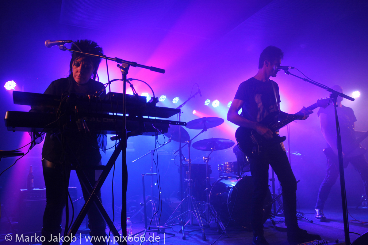 Trouble Fait’ eröffnete den Abend im Berliner Bi Nuu. Toller Postpunk lockte die Berliner Fans gleich zu Beginn des Abends nah an die Bühne. Bis auf den letzten Song ‚La Fille des Baies‘ waren alle Songs in englischer Sprache. Mit im Set war auch der Song ‚Post Punk Night in Paris‘ vom aktuellen Album. Zu diesem Titel gibt es einen coolen schwarz/weiss Videoclip. Auch die Coverversion ‚Love will tear us apart‘ von Joy Division wurde gespielt und kam beim Publikum super an. Das war ein toller Beginn des langen Konzertabends.