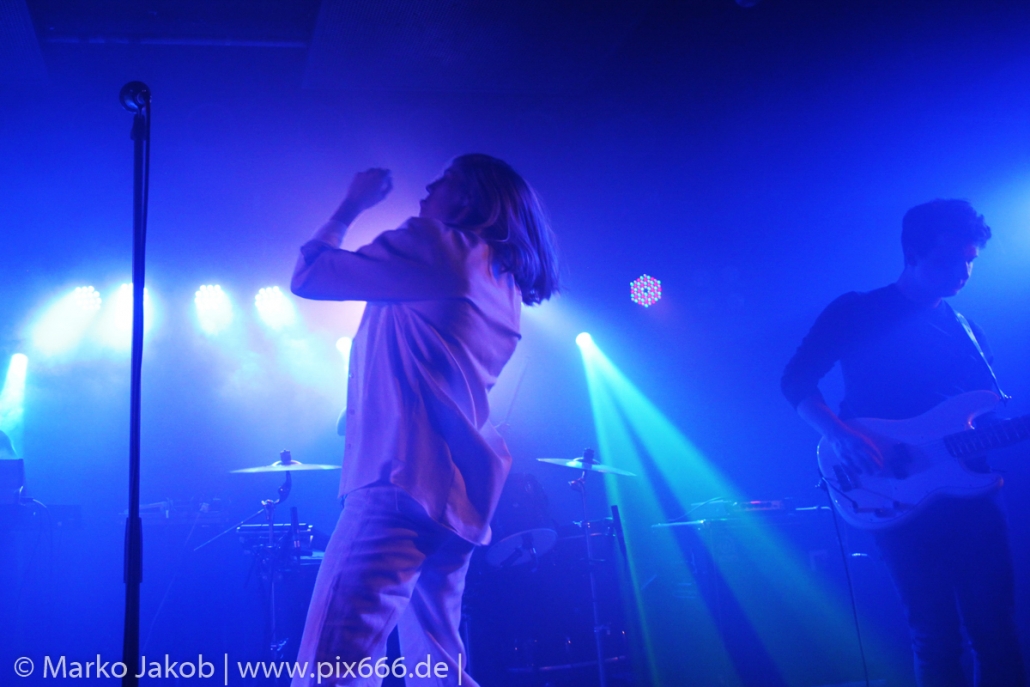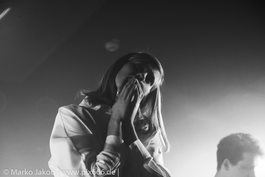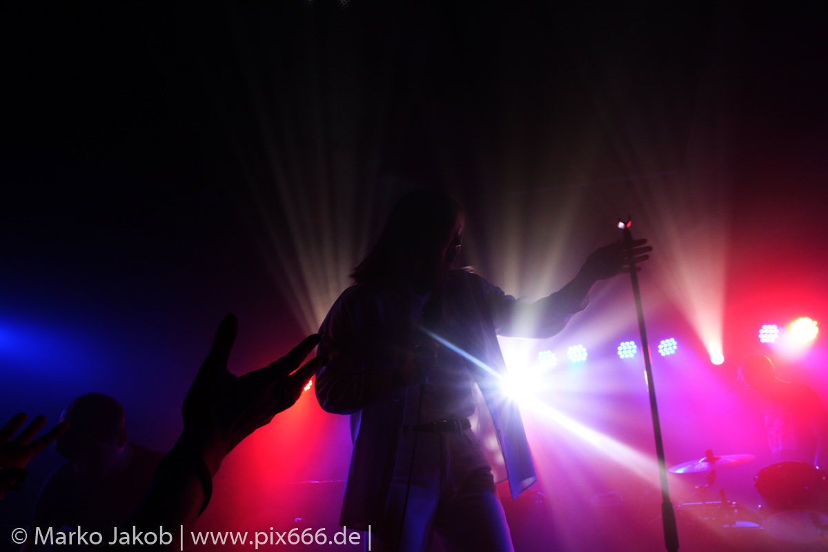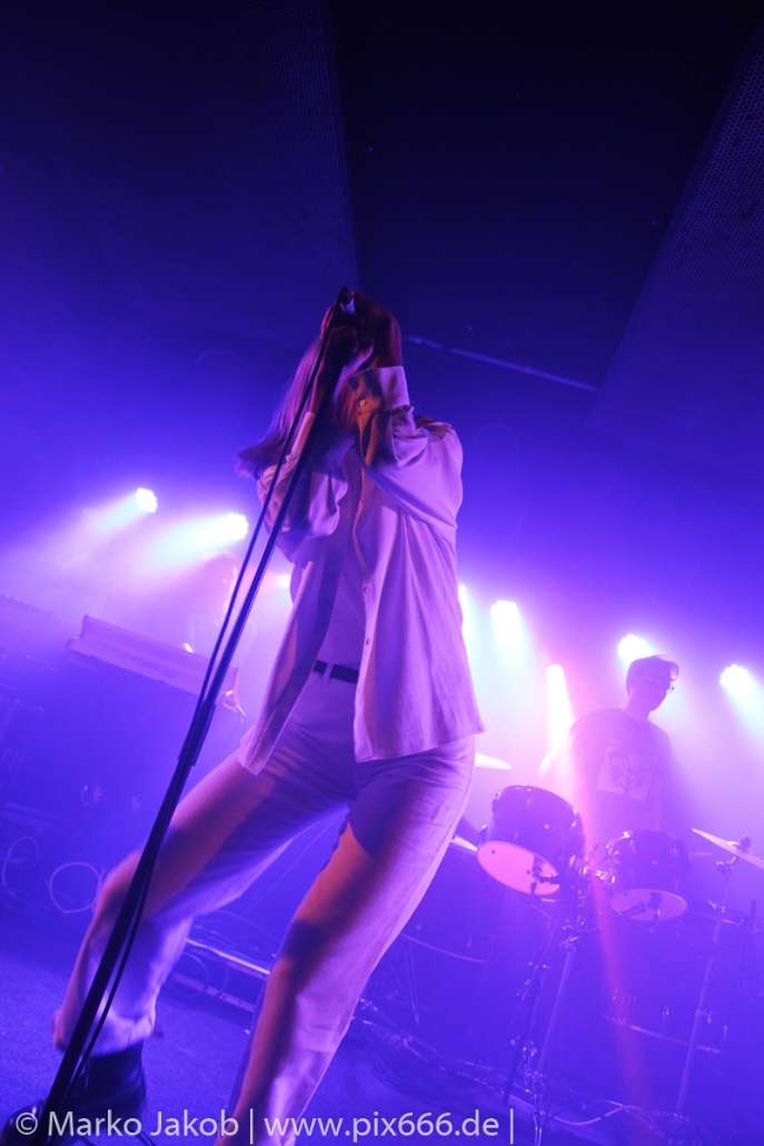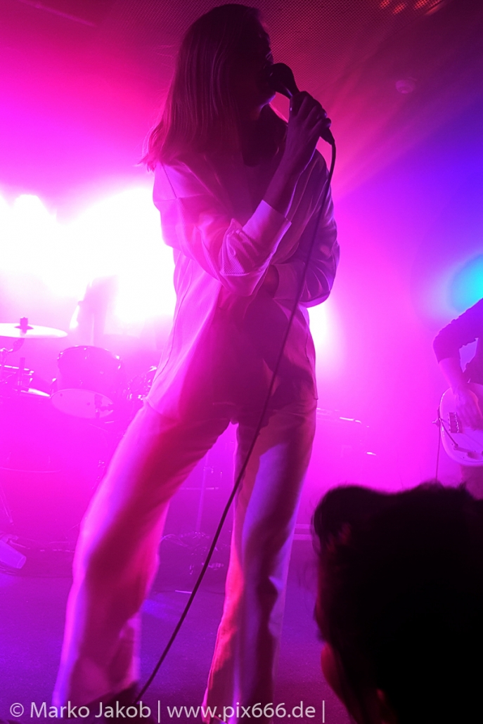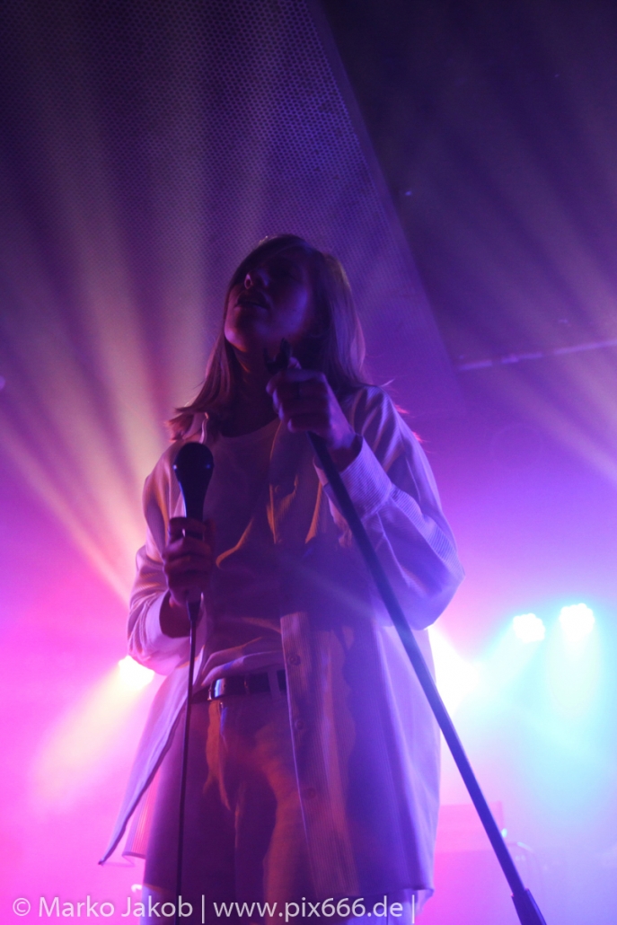 Das Publikum stand wie im Frühjahr dicht gedrängt vor der Bühne. Es gab heute eine kleine Verzögerung von etwa 30 Minuten. Aber etwa um Mitternacht begann die Show. Die tiefe Stimme von Sängerin Fenne und die düstere Musik erschufen eine ganz besondere Atmosphäre im Bi Nuu. Mehr Emotion geht kaum – das grenzte schon teilweise an Ekstase. Die Stimmung im Publikum nahm von Song zu Song immer mehr zu. Die Berliner ließen sich sehr leicht von dem emotionalen Auftritt anstecken und tanzten pausenlos mit. Whispering Sons spielten das komplette neue Album und zusätzlich einige ältere Titel. Nach etwa 75 Minuten war der Auftritt dann vorbei. Das Berliner Publikum war total begeistert und hofft auf ein baldiges Wiedersehen mit der Band. Nach dem Konzert nahmen sich die sympathischen Musiker noch reichlich Zeit für die Fans – Autogramme, Fotos und einige Gespräche rundeten einen perfekten Abend ab.