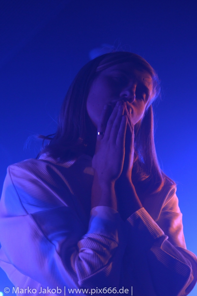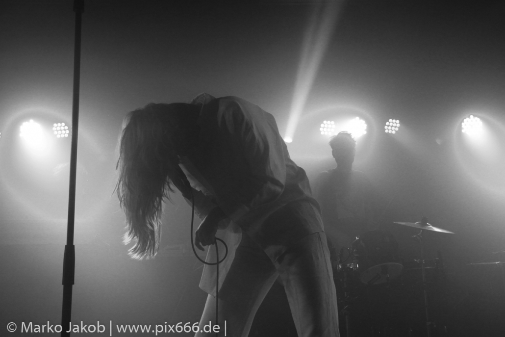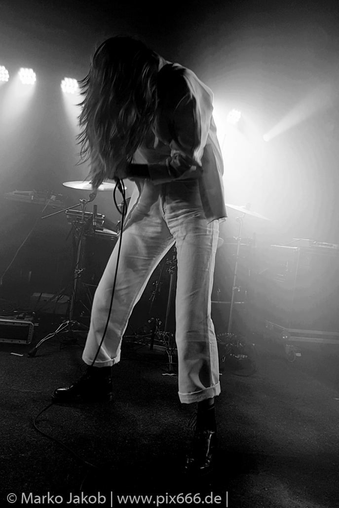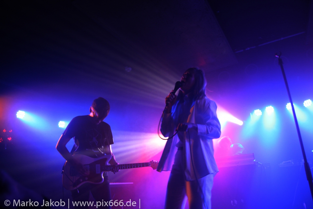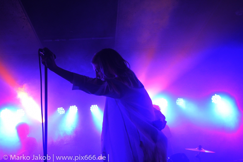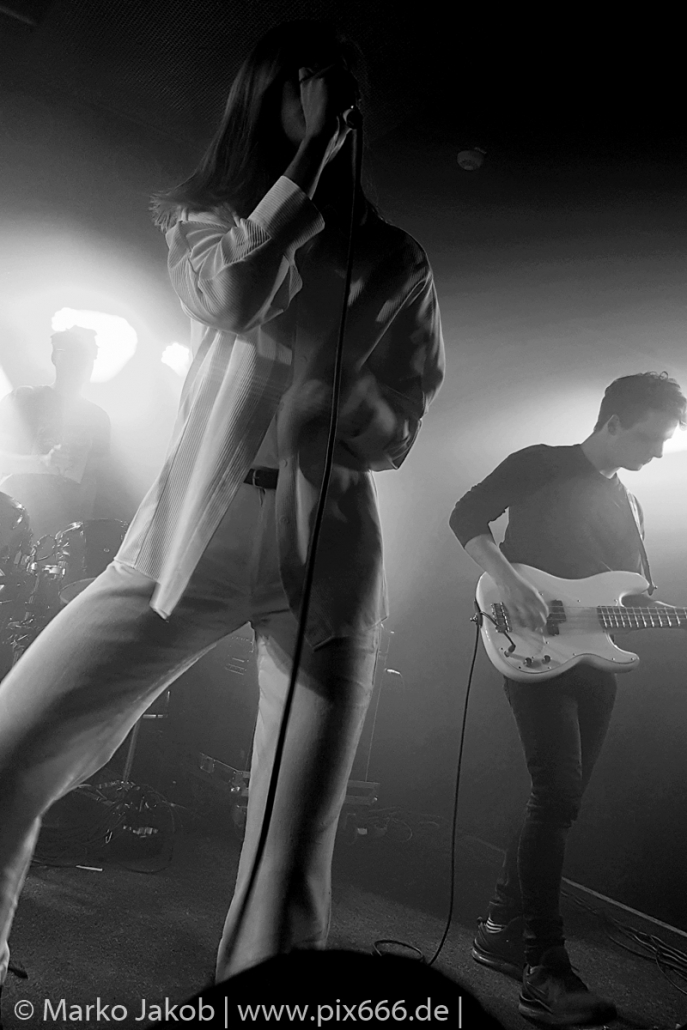 Das Publikum stand wie im Frühjahr dicht gedrängt vor der Bühne. Es gab heute eine kleine Verzögerung von etwa 30 Minuten. Aber etwa um Mitternacht begann die Show. Die tiefe Stimme von Sängerin Fenne und die düstere Musik erschufen eine ganz besondere Atmosphäre im Bi Nuu. Mehr Emotion geht kaum – das grenzte schon teilweise an Ekstase. Die Stimmung im Publikum nahm von Song zu Song immer mehr zu. Die Berliner ließen sich sehr leicht von dem emotionalen Auftritt anstecken und tanzten pausenlos mit. Whispering Sons spielten das komplette neue Album und zusätzlich einige ältere Titel. Nach etwa 75 Minuten war der Auftritt dann vorbei. Das Berliner Publikum war total begeistert und hofft auf ein baldiges Wiedersehen mit der Band. Nach dem Konzert nahmen sich die sympathischen Musiker noch reichlich Zeit für die Fans – Autogramme, Fotos und einige Gespräche rundeten einen perfekten Abend ab.