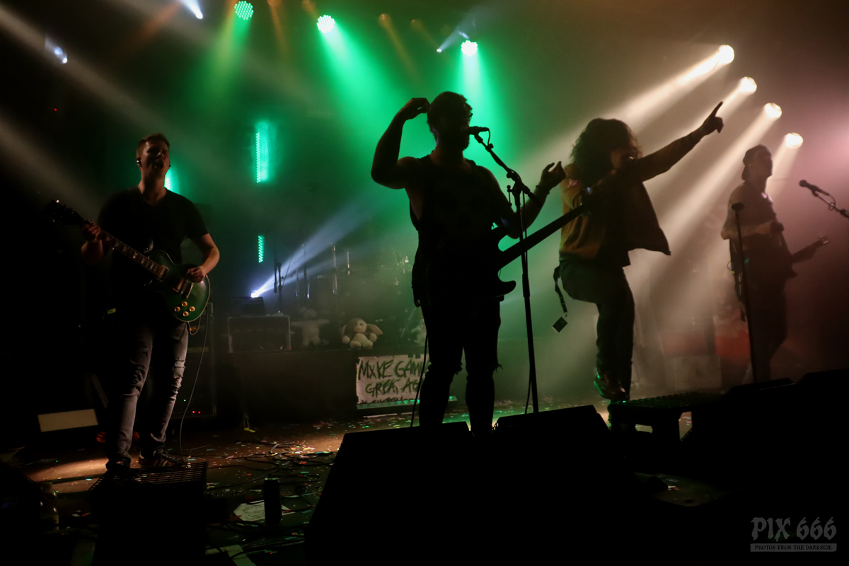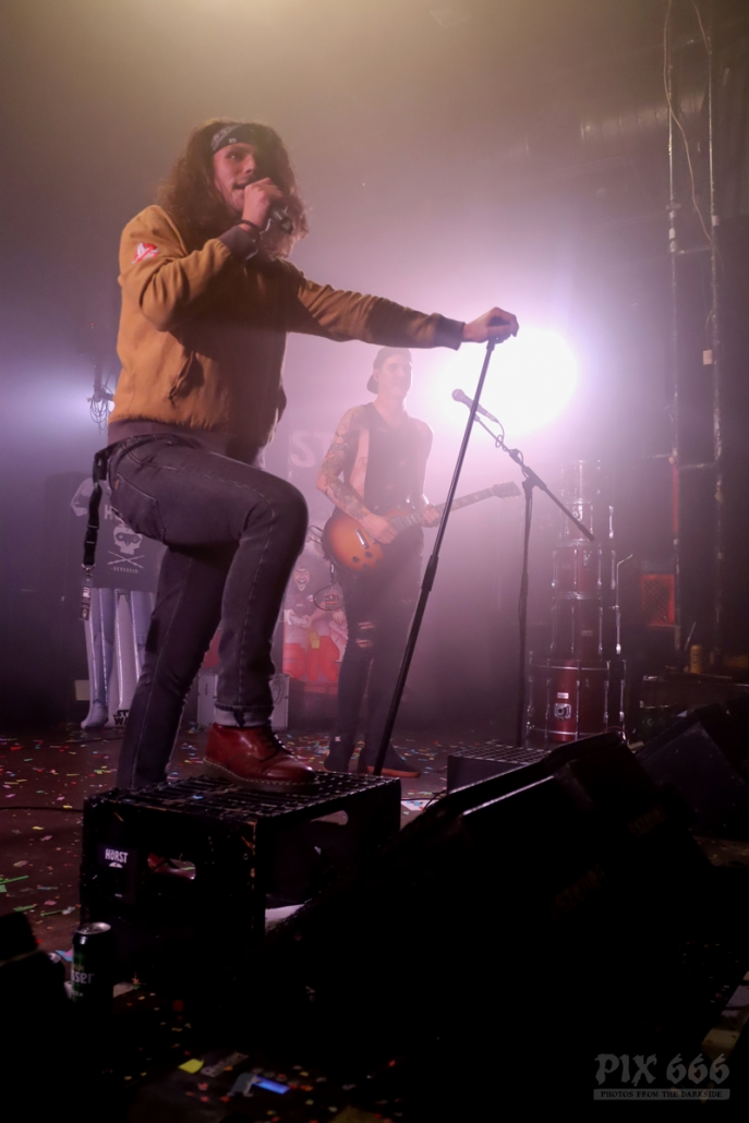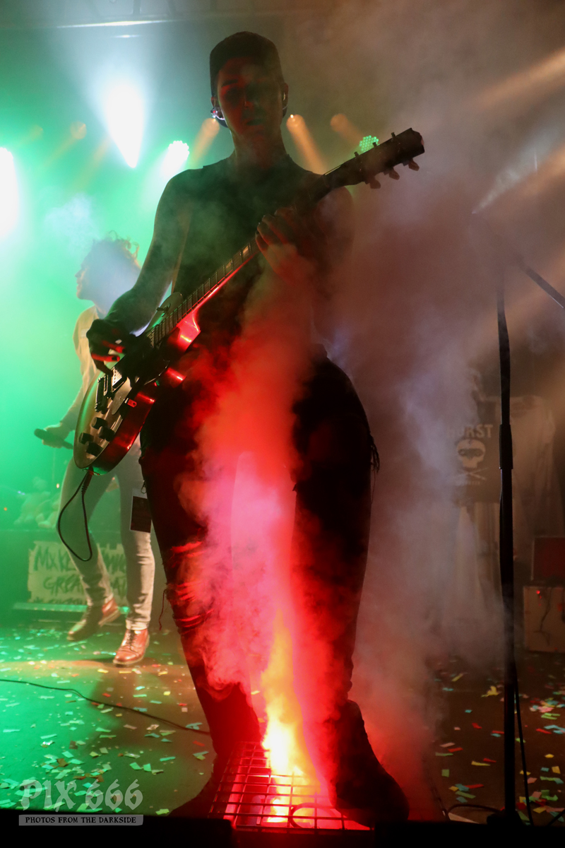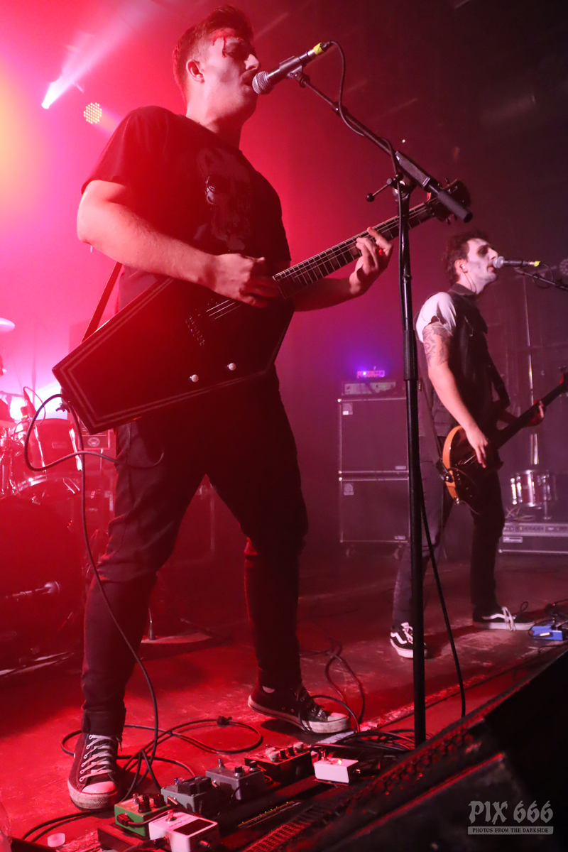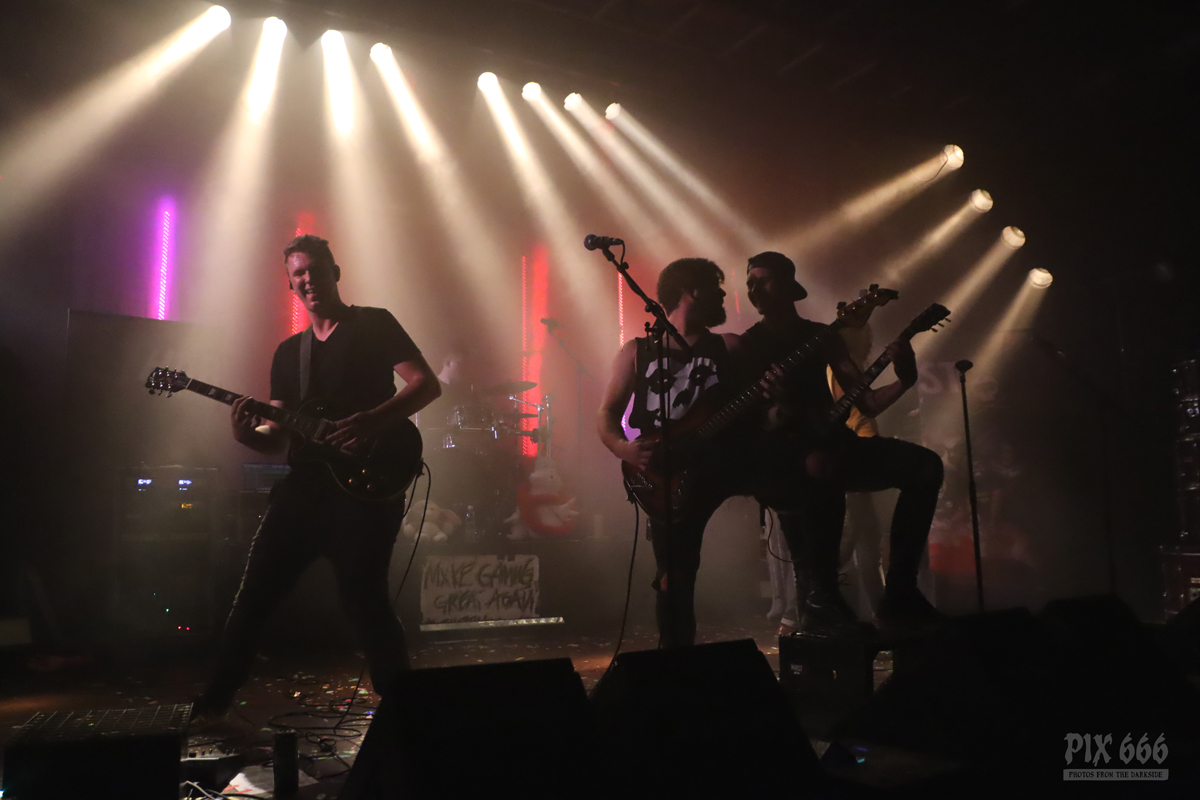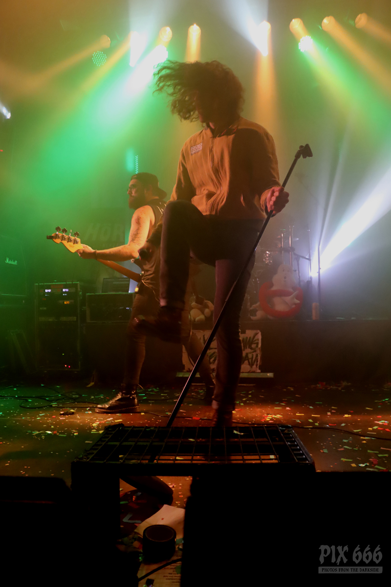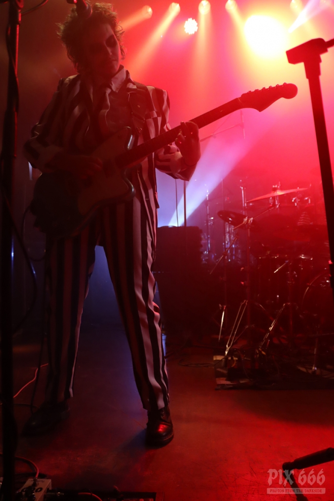 Die Band schmettere den Gruselgästen flotte Punk Songs um die Ohren, so auch den auf Spotify zensierten Song ‚Forbidden Fruit‘. Besonders auffällig bei The Spauldings war der sargförmige Gitarrenkorpus des Sängers.