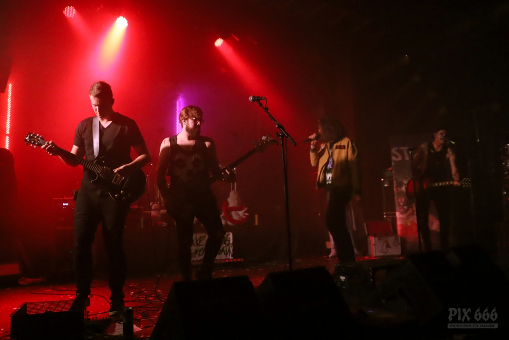 „Wir haben noch nie vor einem so schön geschminkten Publikum gespielt“. Weiter ging es dann mit dem Cover von ‚Pet Cemetary‘, dem Titelsong des gleichnamigen Horrorfilms nach dem Drehbuch von Stephen King. Die eine Stunde toller Partyspaß endete mit dem Klassiker ‚Ghostbusters‘.