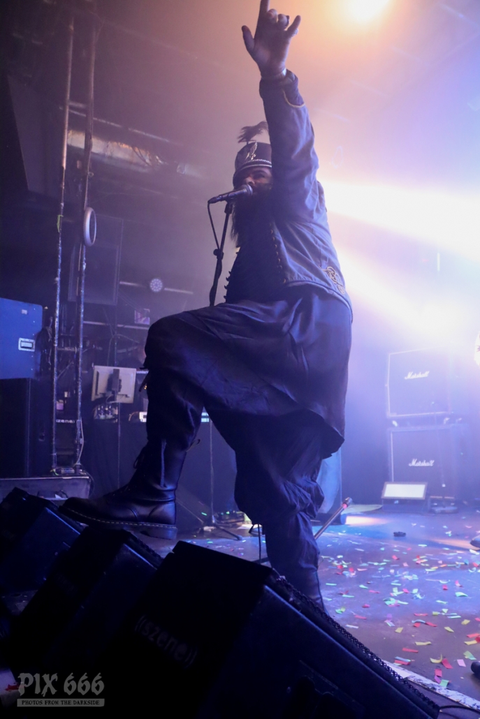 „Wenn ihr heute pogen wollt, dann jetzt“ kam dann als Aufforderung an das Partyvolk. Und ab ging die Post – das war ein cooler Start in den Zombieball. Als letzter Song kam dann schließlich ‚Run Rabbit Run‘ zu dem die Band einen Tag vor Halloween einen Videoclip veröffentlicht hat.