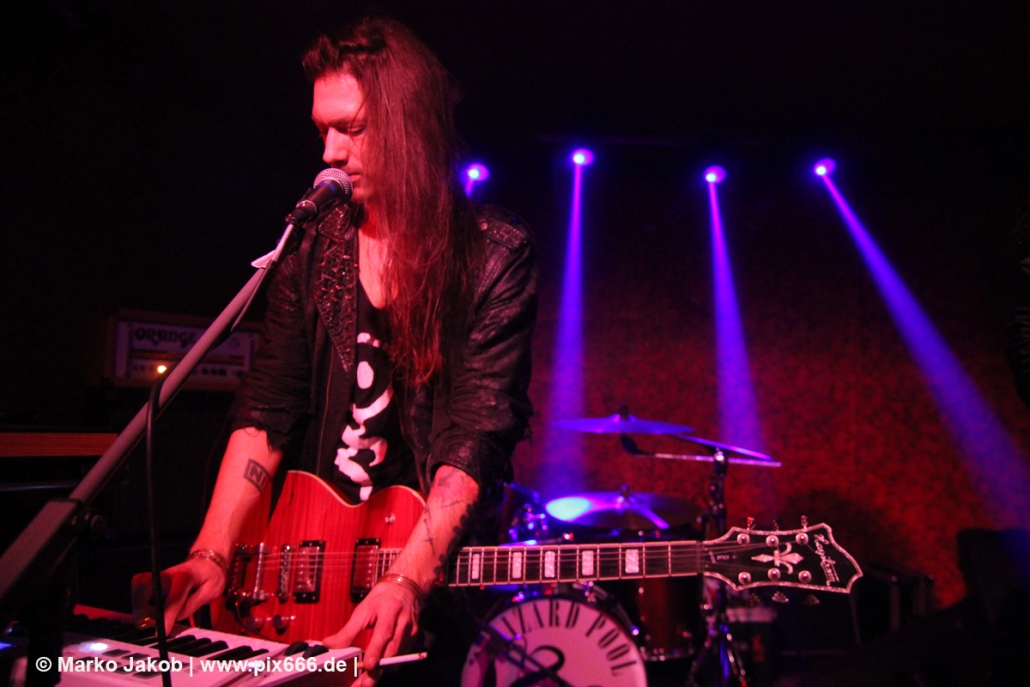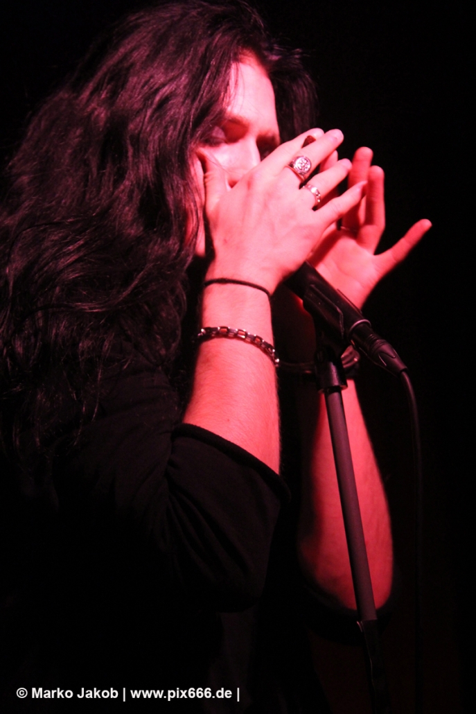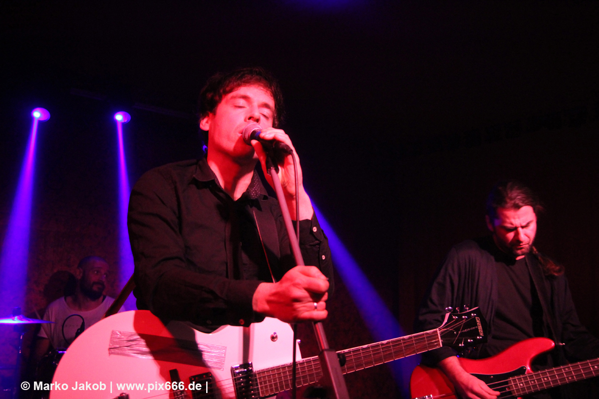 Nach einem Intro begann das Konzert mit dem flotten ‚Seconds Gone‘. Danach folgte vom durchweg überzeugendem und abwechslungsreichem Debutalbum der Song ‚The Sick Rose‘ – etwas elektronischer als die anderen Titel und dennoch mit tollen Gitarrenriffs erinnert es etwas an den Sound von IAMX. Die Location passte wunderbar zur Musik, es war stimmungsvoll und intim – das Publikum war total nah an der Band. Konstantin lies sich sogar von einem Fan eine Zigarette anzünden. Weiter ging es mit dem melancholischen ‚Desire‘, gefolgt vom treibenden Sound von ‚Venus In Chains‘. Die Zeit rannte, so ist es immer, wenn einem etwas gut gefällt. ‚Wir haben noch zwei Songs‘ sagte Konstantin. ‚Winter Falls‘ war wieder etwas ruhiger, passte aber hervorragend zu Konstantins Stimme. ‚Das kennt jetzt jeder, wenn nicht weiß ich nicht, warum ihr hier seid‘ sagte der sympathische Sänger vor dem Song ‚Becoming Caligari‘. Ein ganz besonderer und exzentrischer Song, der bereits Ende 2017 als Videoclip veröffentlicht wurde. Danach gab es viel Applaus und Zugabe Rufe. Konstantin sagte zum Publikum: ‚Wir haben schon alles gespielt, was wir haben‘.