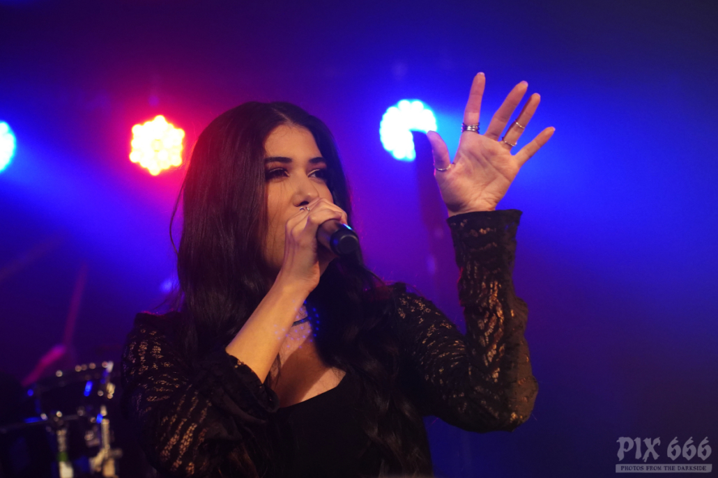 Mit ein paar Minuten Verspätung begannen Moran Magal ihre Show. Sie begleiteten Xandria bei zwei der drei Release Shows. Die Band aus Israel, deren Bandname auch gleichzeitig der Name der Sängerin ist, startete ihren Auftritt mit dem Opener ihres aktuellen Albums ‚Under Your Bed‘ aus dem Jahr 2019.