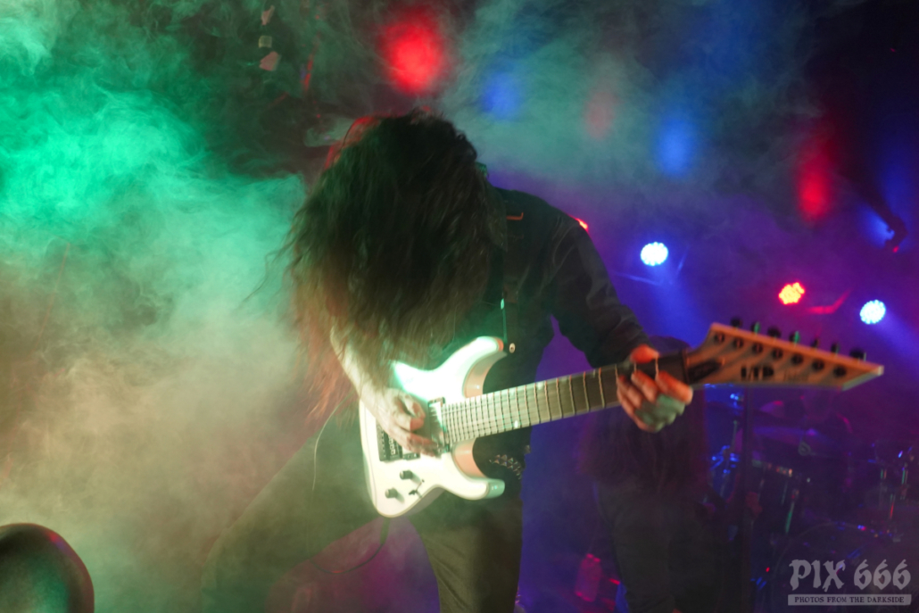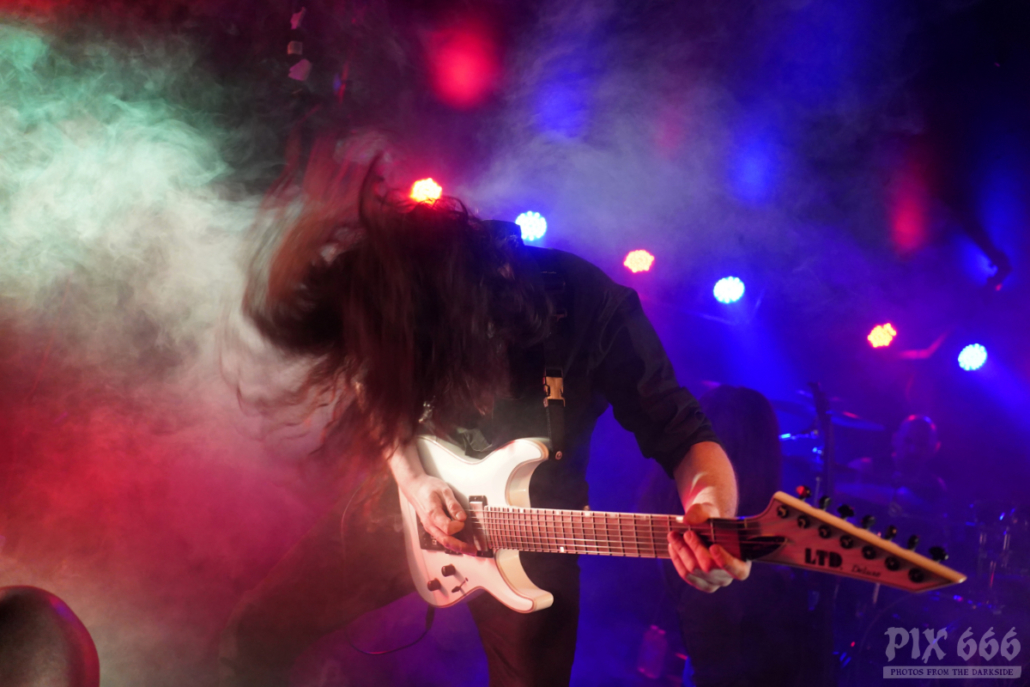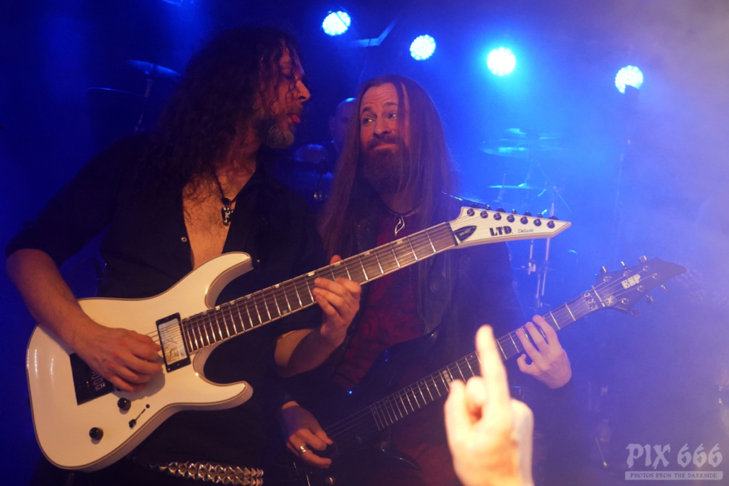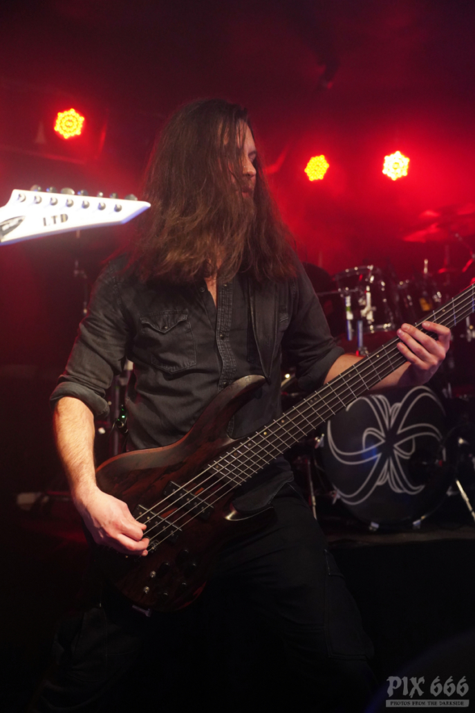 Der kleine Saal des Hellraiser war nun richtig gut vollgepackt – viel fehlte da nicht an ‚ausverkauft‘. Die im letzten Jahr vom Bandgründer Marco Heubaum komplett neu zusammengestellte Band wirkte nach so kurzer Zeit schon wie eine richtige Einheit – da stimmte Alles – sowohl musikalisch, als auch showtechnisch war das Releasekonzert ein absoluter Leckerbissen. Xandria hatten leichtes Spiel, das Publikum auf eine Reise durch das neue Album und die Klassiker der Band mitzunehmen – die Fans waren richtig gut aufgelegt und waren innerhalb kurzer Zeit am headbangen und mitsingen.