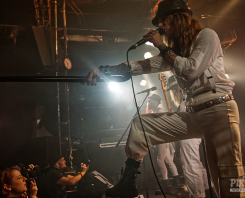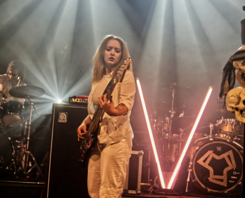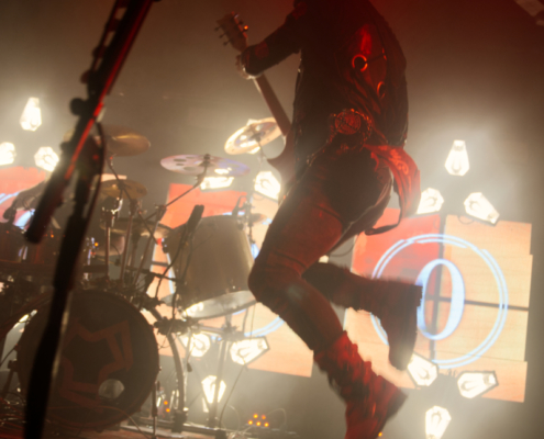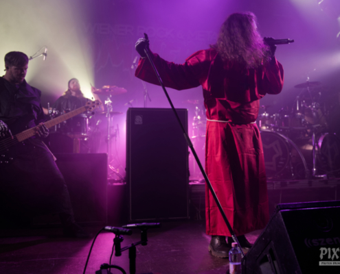 Los ging es für uns mit Vertilizar, die noch vor ein paar Monaten das Publikum im ((Szene)) Soundgarden mit einer Akusik-Show verzaubert hatten. Heute hieß es wieder Stromgitarre und volle Power. Mit rotem Umhang mit Kapuze stürmte Sänger Oliver gemeinsam mit seinen Bandkollegen auf die Bühne und sie knallten dem Publikum mit ‚Push The Beast‘ gleich mal ordentlich was um die Ohren. Die Location war sehr gut gefüllt – der perfekte Rahmen für die tolle Rockshow der Oberösterreicher. Bei ‚Enjoy The Suffer‘ gab es dann eine kleine Halloween Wall Of Death. Immer wieder schossen vertikale Rauchsäulen neben den Musikern in die Höhe. Nach dem Meat Pupptes Cover ‚Lake Of Fire‘ folgte einer von Olivers Lieblingssongs – ‚Happy‘. Vertilzar haben übrigens Anfang 2024 nach sieben Jahren Bandgeschichte und einigen EPs endlich ihr langersehntes Debutalbum ‚Leave It All Behind‘ veröffentlicht – und natürlich hatten sie den Titelsong des Albums heute auch in der Setlist. Dann kamen noch vier große Ballons ins Spiel und brachten nochmal extra Spaß und Stimmung ins Publikum. Zum Abschluss gab es dann noch unseren Lieblingssong – mit ‚My Last Call‘ beendeten Vertilizar einen fantastischen und umjubelten Auftritt.