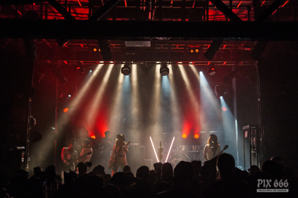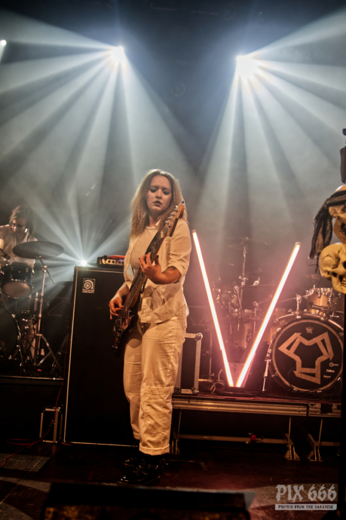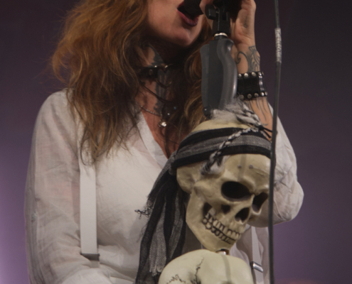 Als nächstes gab es Frauenpower pur – die Wiener Band Vulvarine brachte eine Mischung aus Punk, Hardrock und Metal mit zum Zombieball. Vulvarine starteten ihre Show mit ‚Good Times‘, der Single von ihrer EP ‚Witches Brew‘. Die Band um Sängerin Suzy Q hatte heute ihren allerersten Auftritt in der ((Szene)) – und das nach fünf Jahren Bandgeschichte als Wiener Band, fast genau vier Jahre nach ihrem Livedebut in der Arena Wien. Vulvarine haben das Publikum in der ((Szene)) mit ihrer Action, Energie und Spielfreude im Handumdrehen angesteckt. … und zum Glück dauert es bis zum nächsten Mal nicht wieder fünf Jahre, sondern nur etwa fünf Monate, denn die Mädels sind im Frühjahr auf der etwa zwei Monate dauernden ‚Goddess of the Road‘ Tour als Support der schwedischen Band Thundermother unterwegs und somit Ende März erneut in der ((Szene)) auf der Bühne. Neben den neueren Songs spielten Vulvarine auch einige Songs vom 2020er Debutalbum ‚Unleashed‘, unter anderem auch die tolle Videosingle ‚Rock Bottom‘, mit der der mitreißende Auftritt endete. Das war wirklich toll und wir sagen mal, bye bye bis März. Wenn es dir auch gefallen hat, dann am besten gleich auf zum Ticketshop. Tickets Vulvarine/ Thundermother Wien *